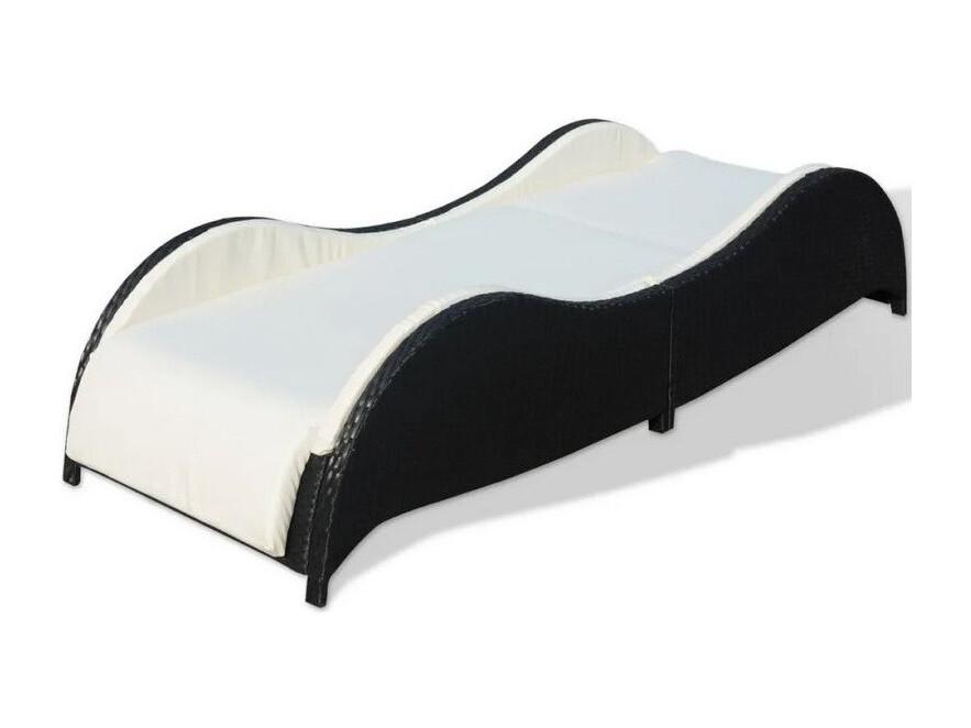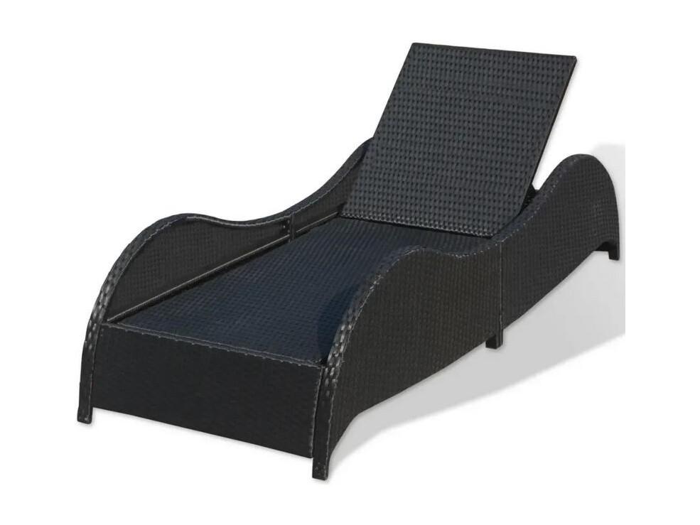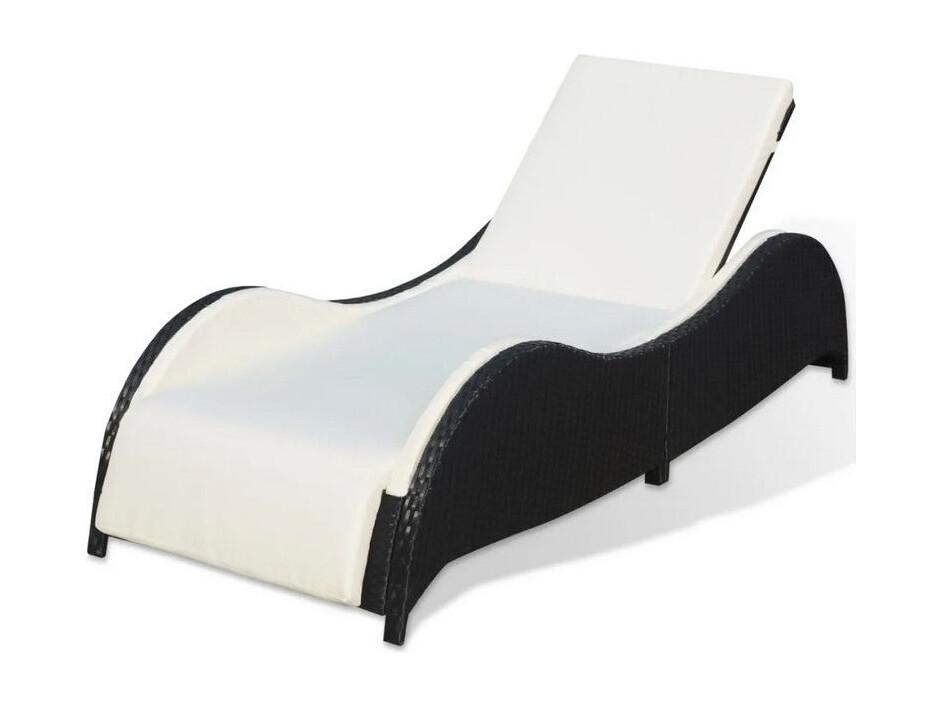 Chaise longue tissu blanc et résine tressée noire Leffo