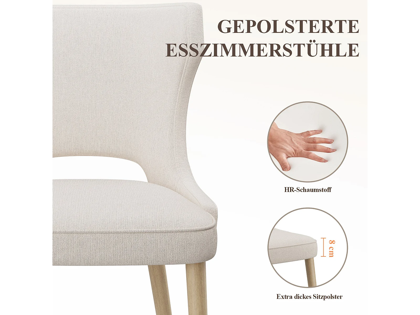 Chaise – Lot de 2 chaises capitonnées dossier haut style club – Pour salle à manger, cuisine, salon – Beige