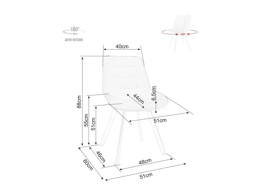 Chaise velours gris pivotante à 180° avec retour automatique et assise moelleuse SALISZ