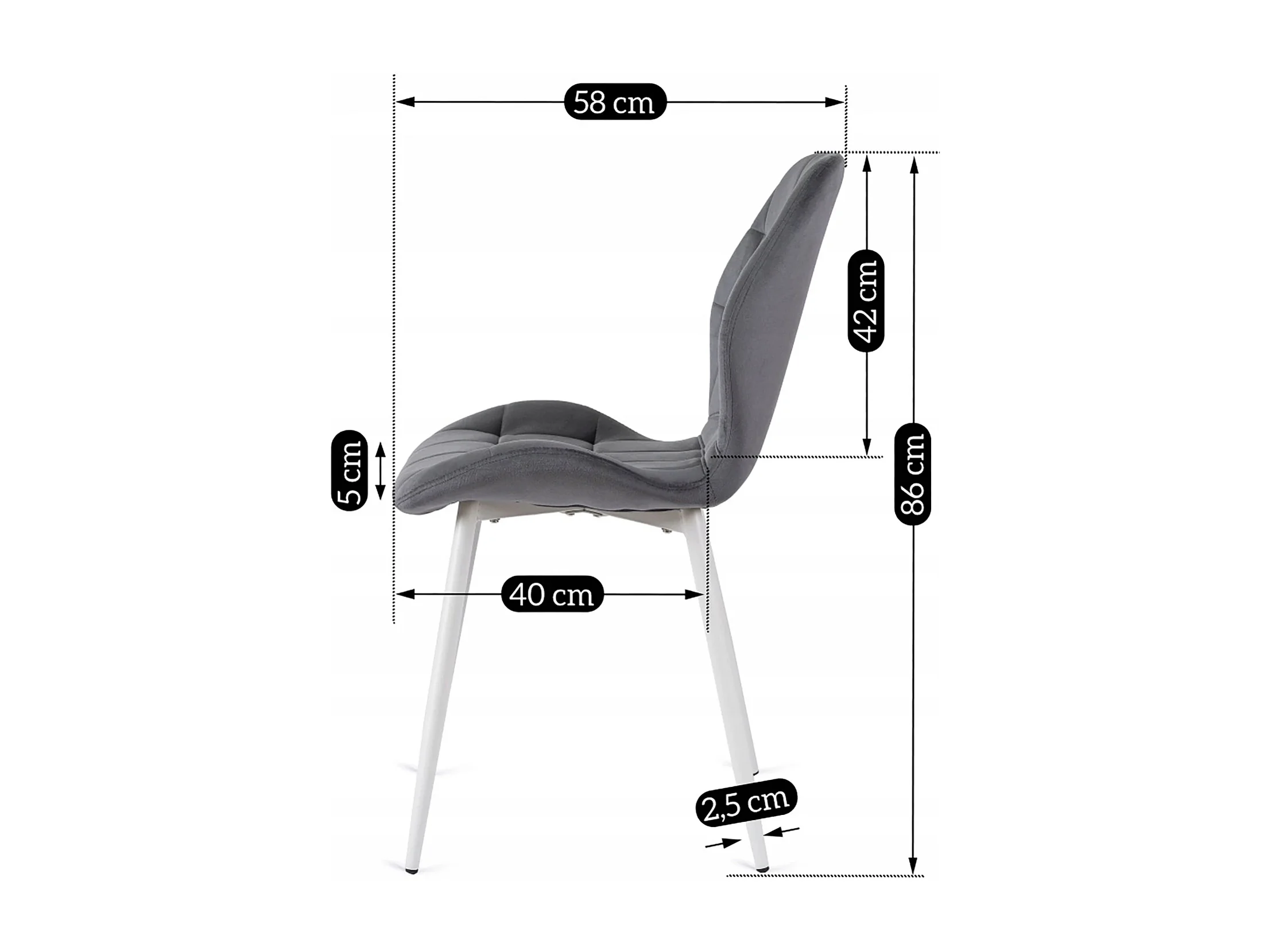 Chaise LUCKY Grise avec Pieds Blancs en Velours