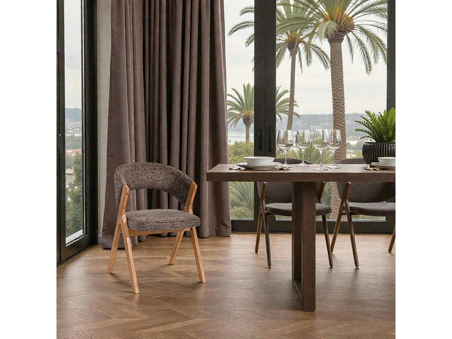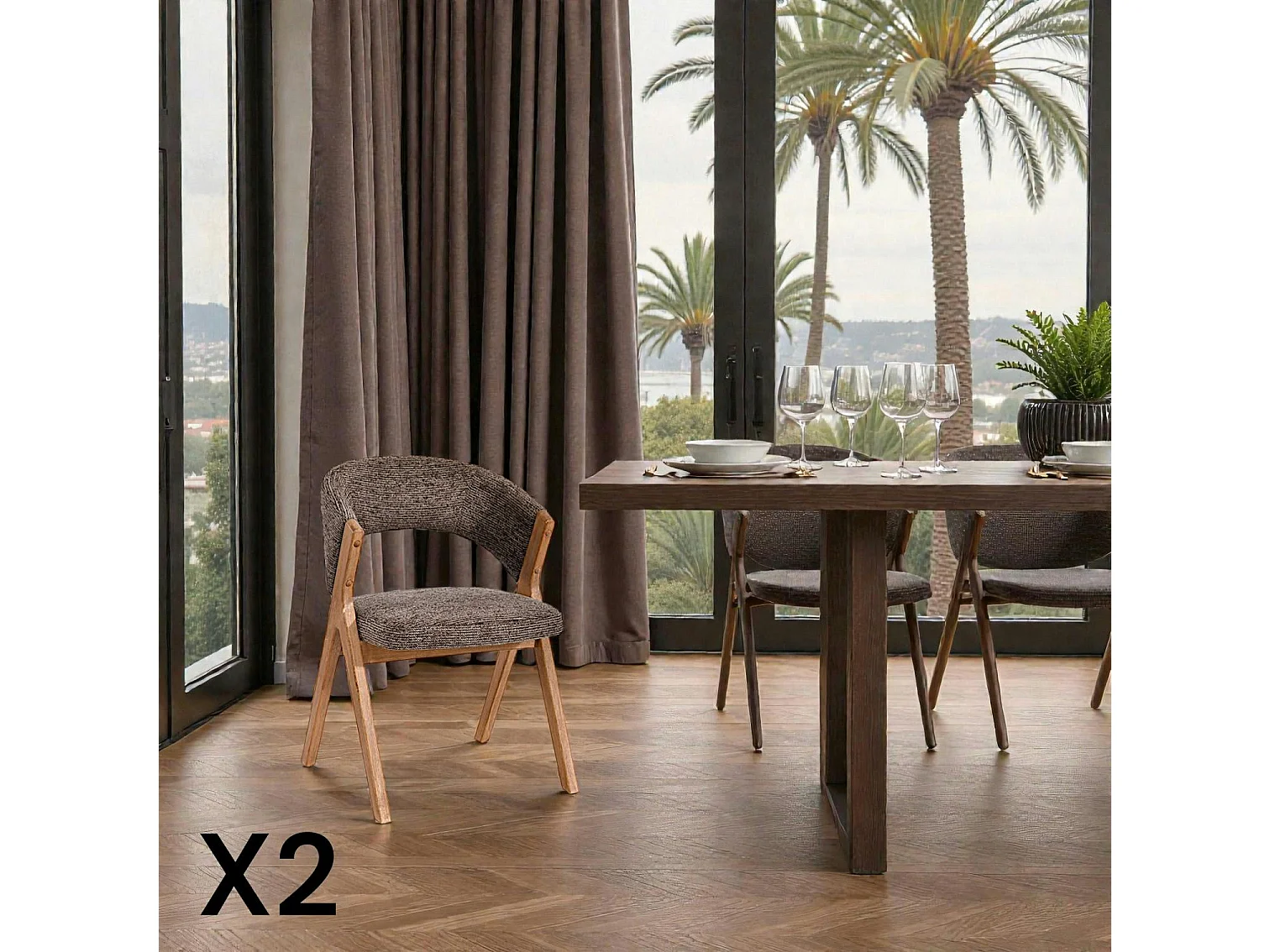 Chaise marron bois et tissu, forme ronde (lot de 2) AGADE