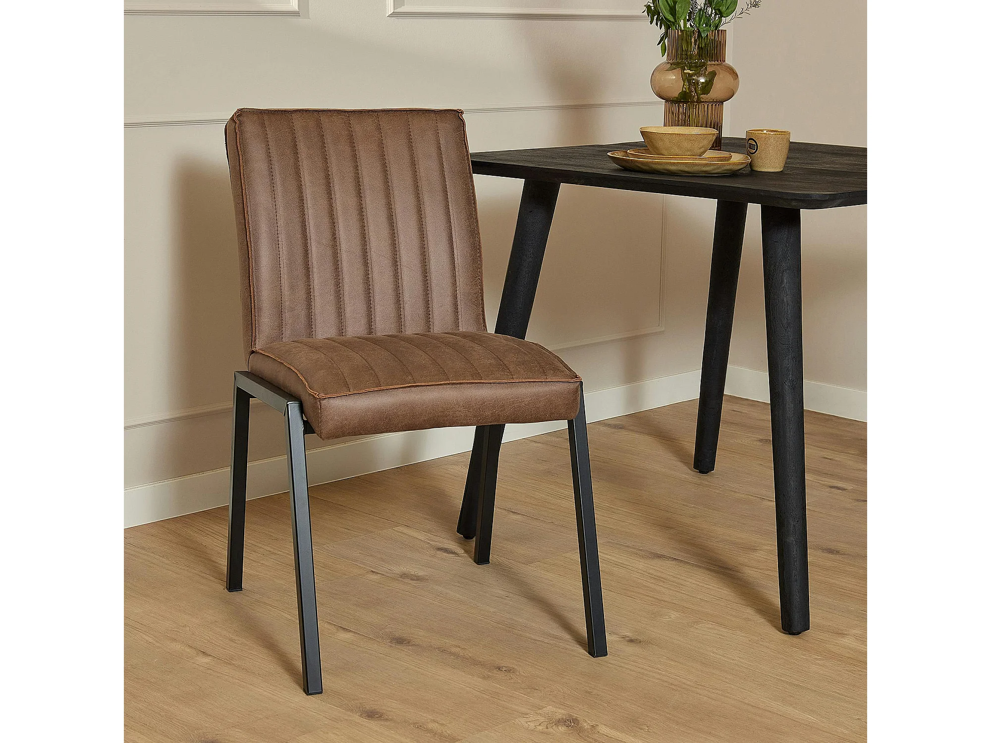 Chaise marron rembourrée à bandes (lot de 2) CORTINA