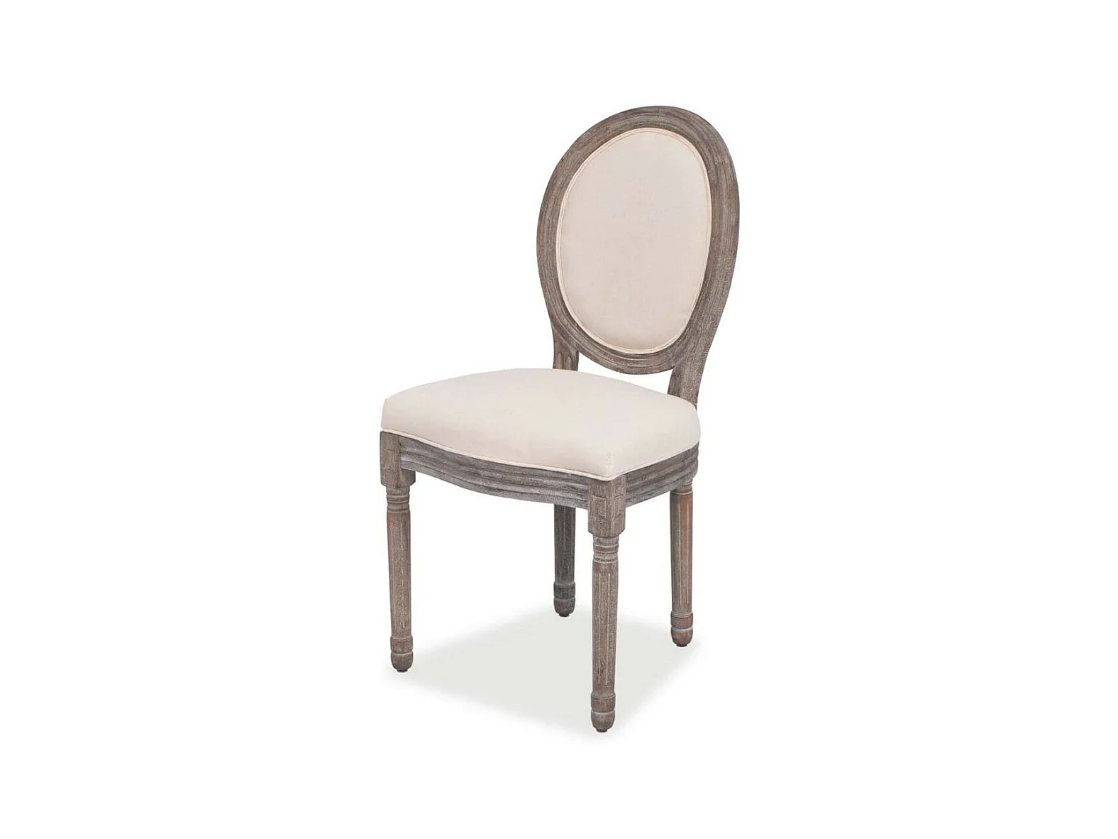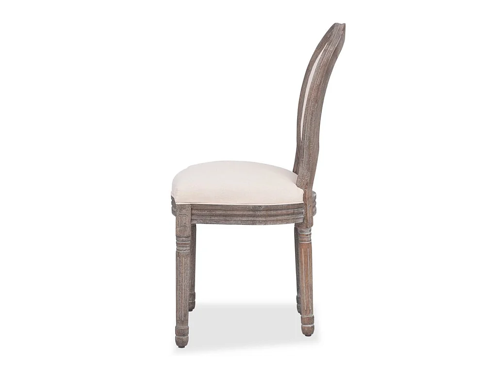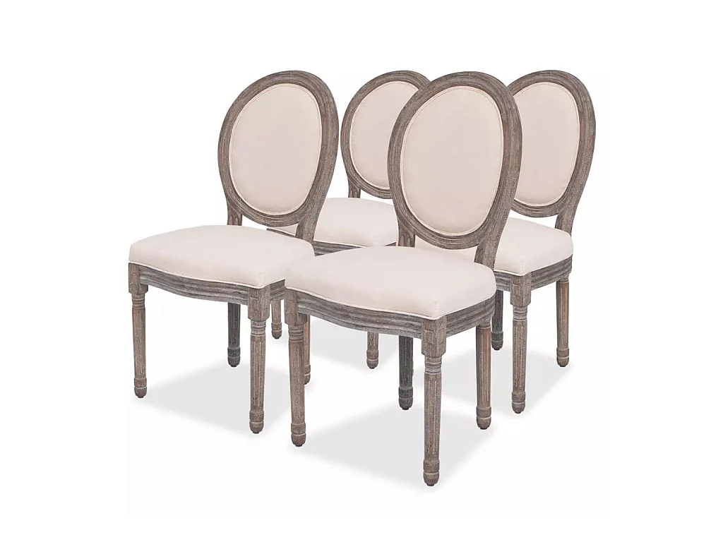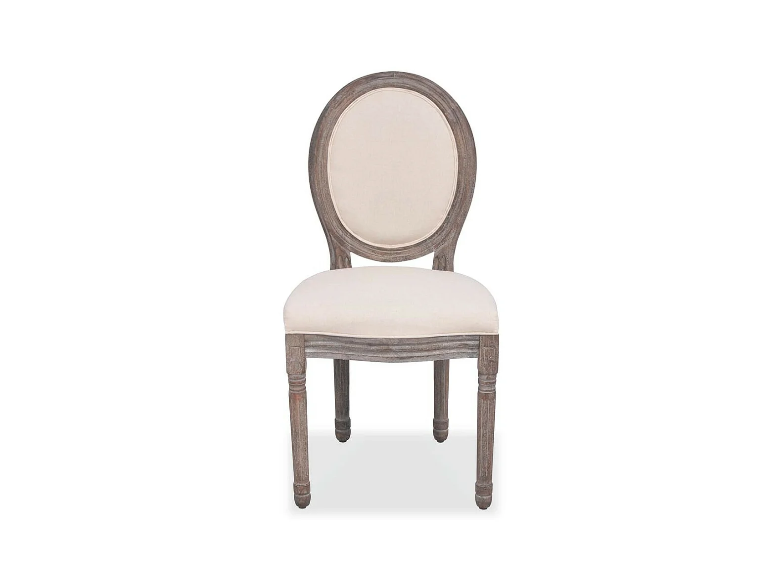 Chaise médaillon lin beige et pieds bois massif clair Makin - Lot de 4