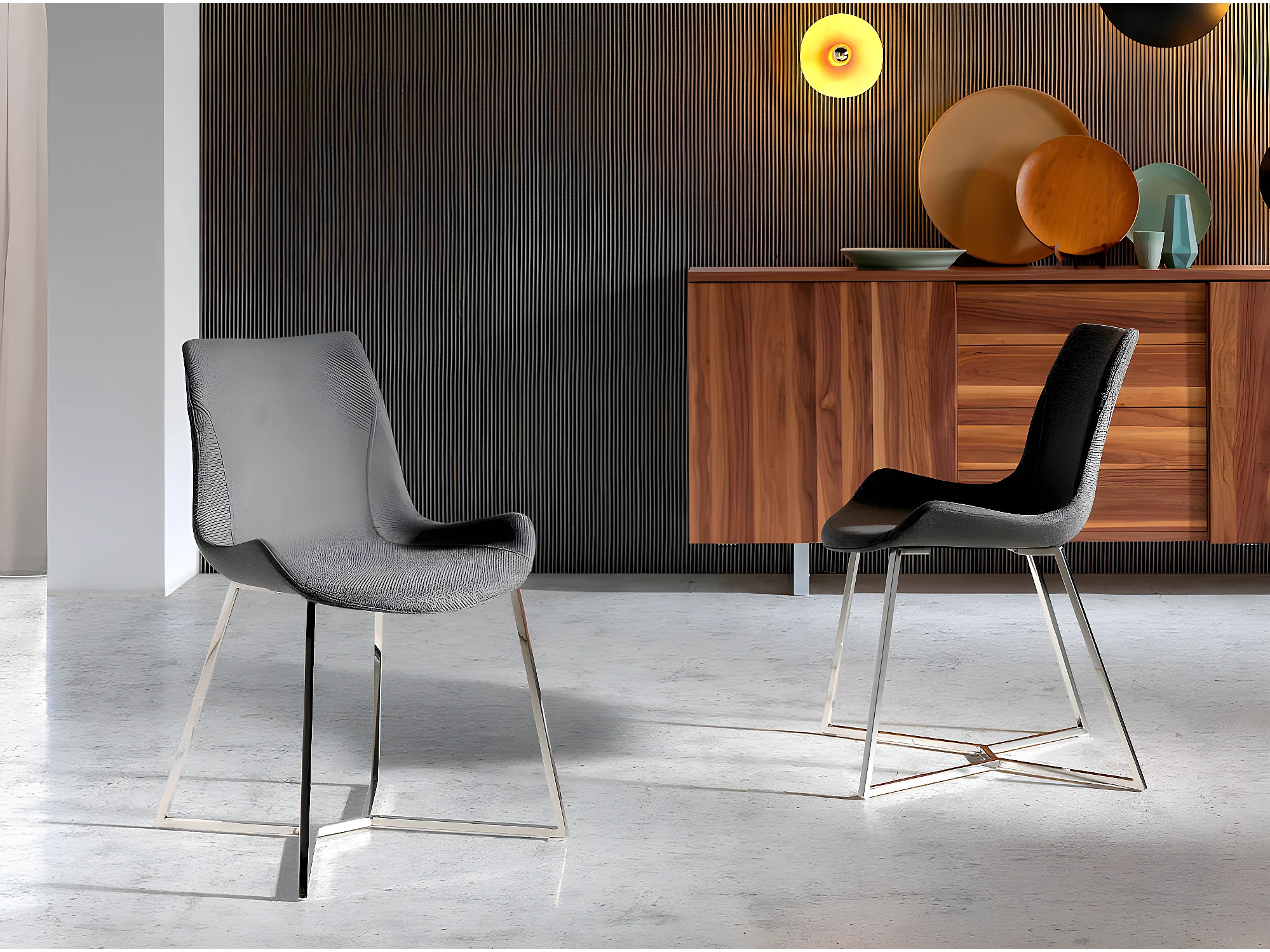 Chaise moderne tissu et pieds acier chromé Donia - Lot de 4-Couleur Aqua 90 Noir