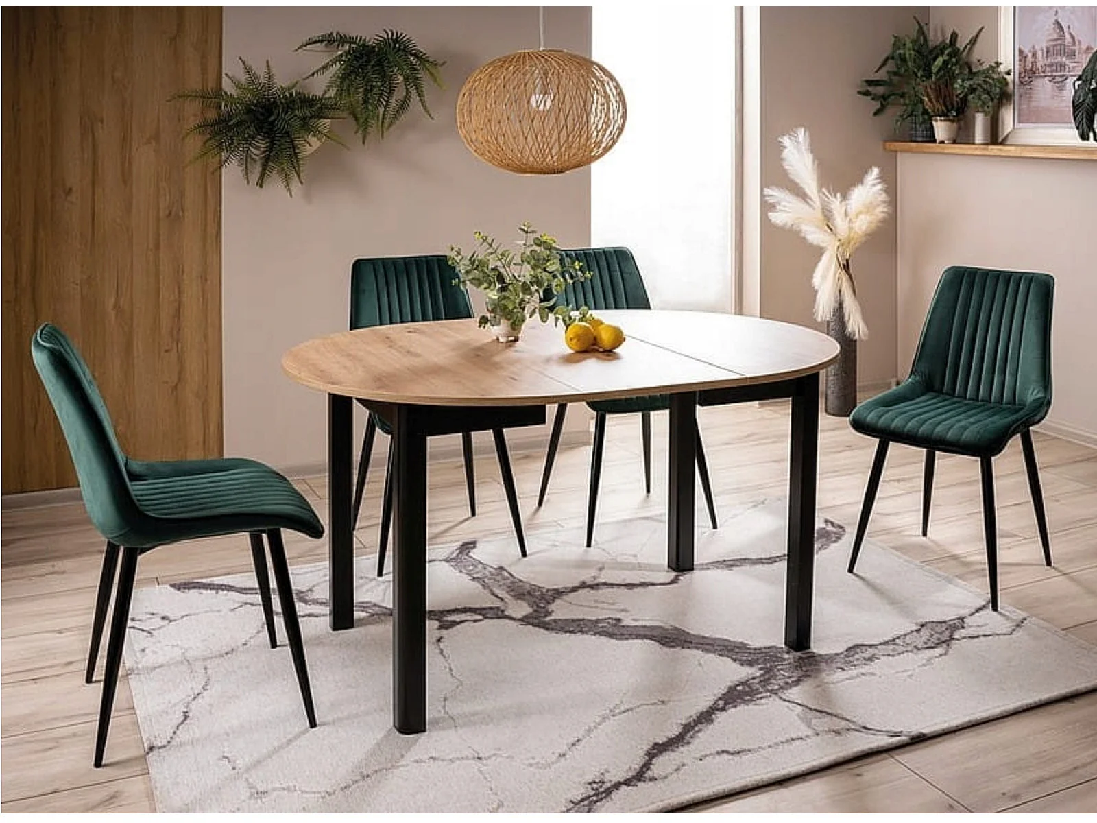 Table à manger extensible 6 à 10 personnes en MDF et métal - Naturel et noir - CATONAV