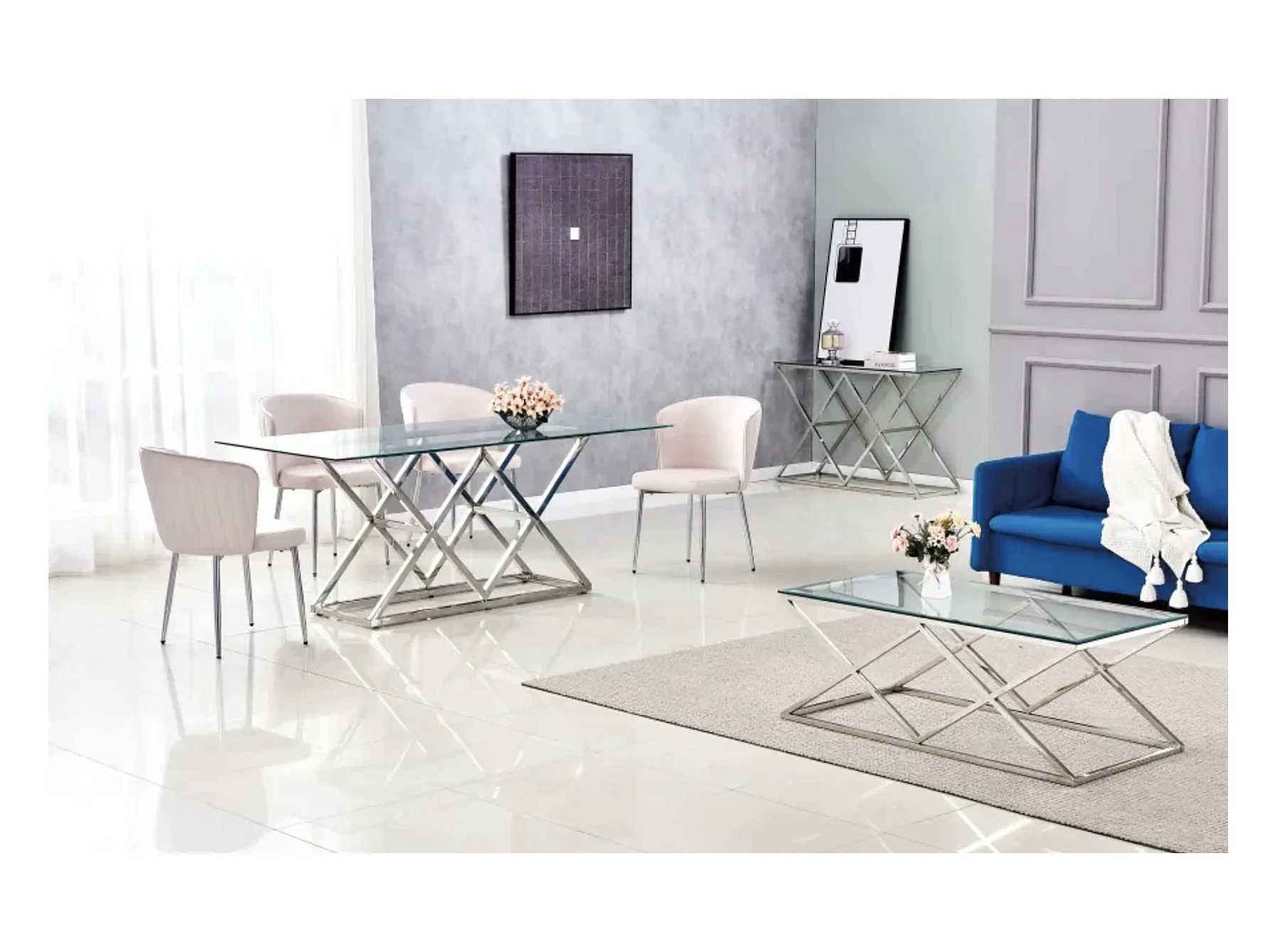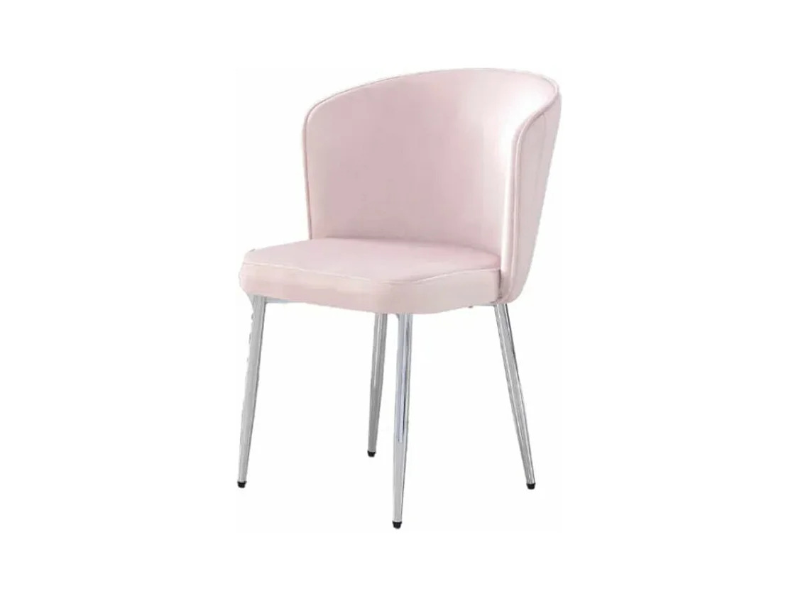 Lot de 4 chaises en velours et pieds métal chromé Komi-Couleur Rose clair