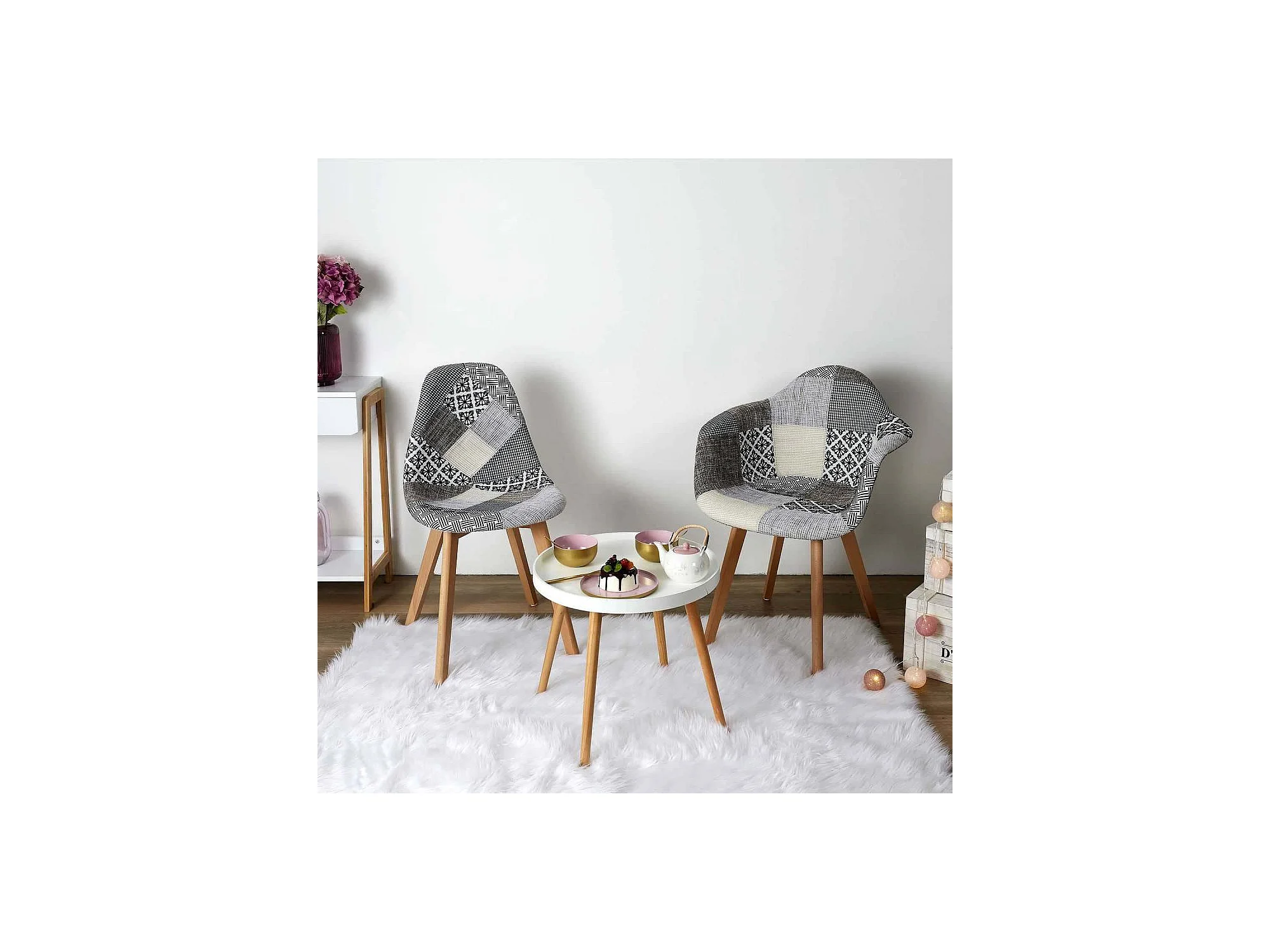 Chaise Patchwork Gris - Lot De 4 Blanc, Gris, Marron