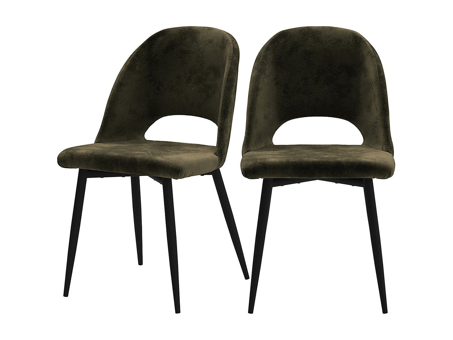 Lot de 2 chaises en velours vert et pieds en métal noir - Pénélope