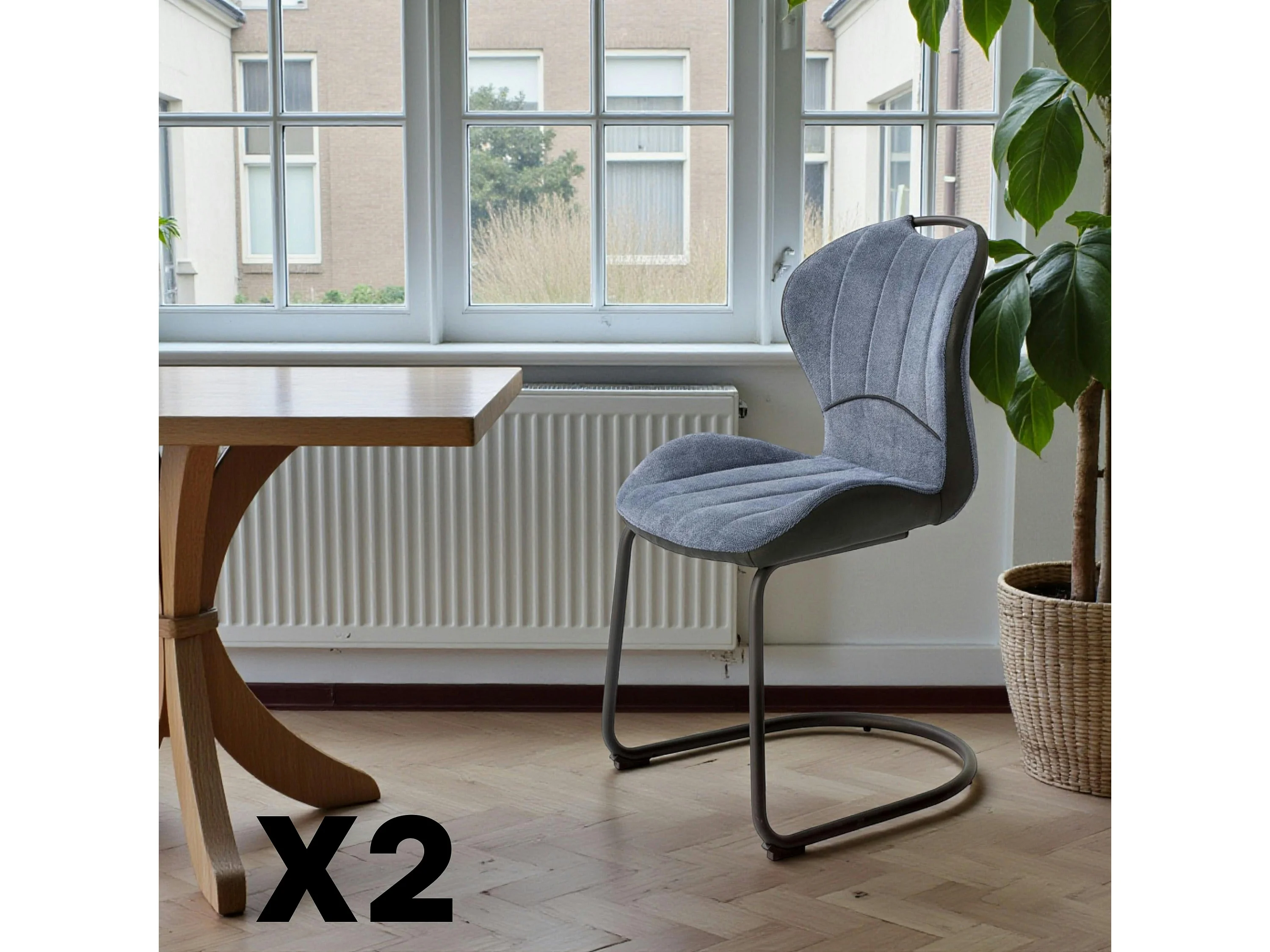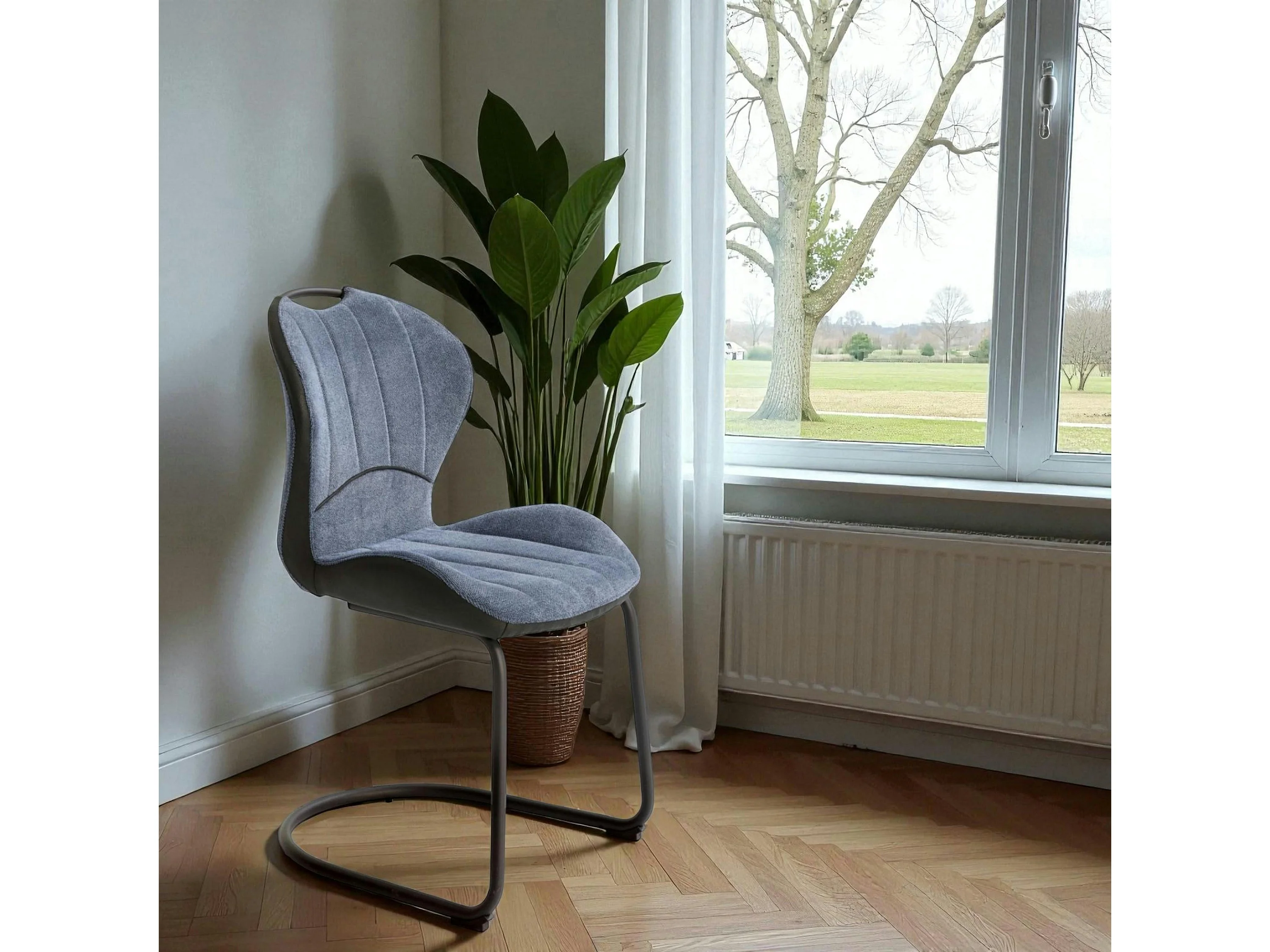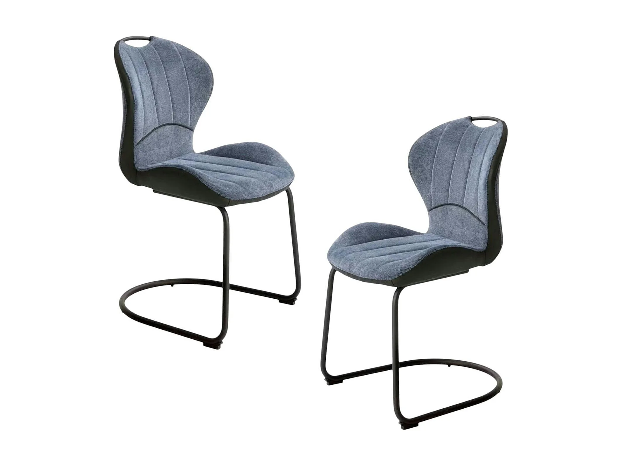 Chaise pied luge bi-matière en tissu bleu (lot de 2) LIGURIE