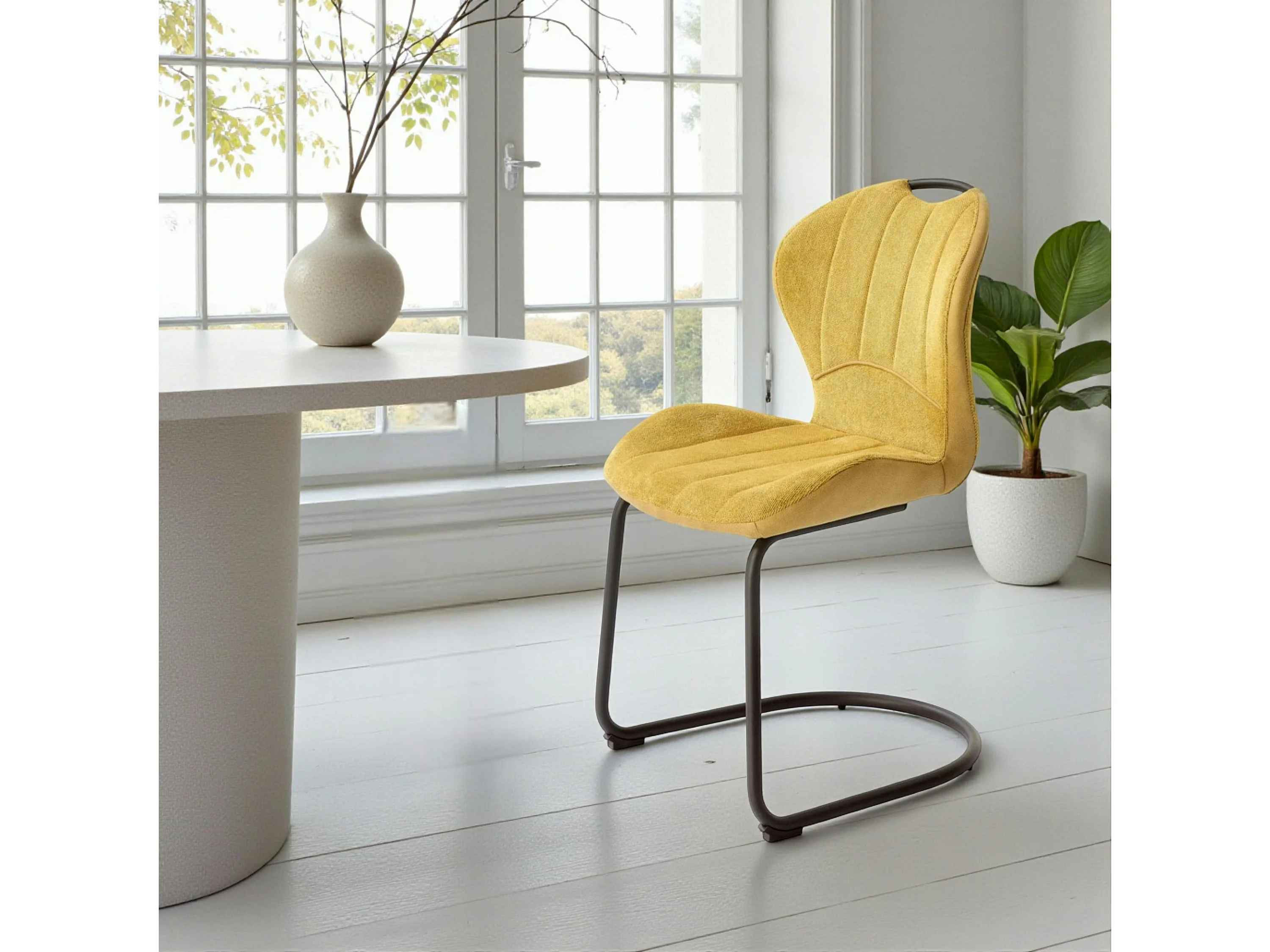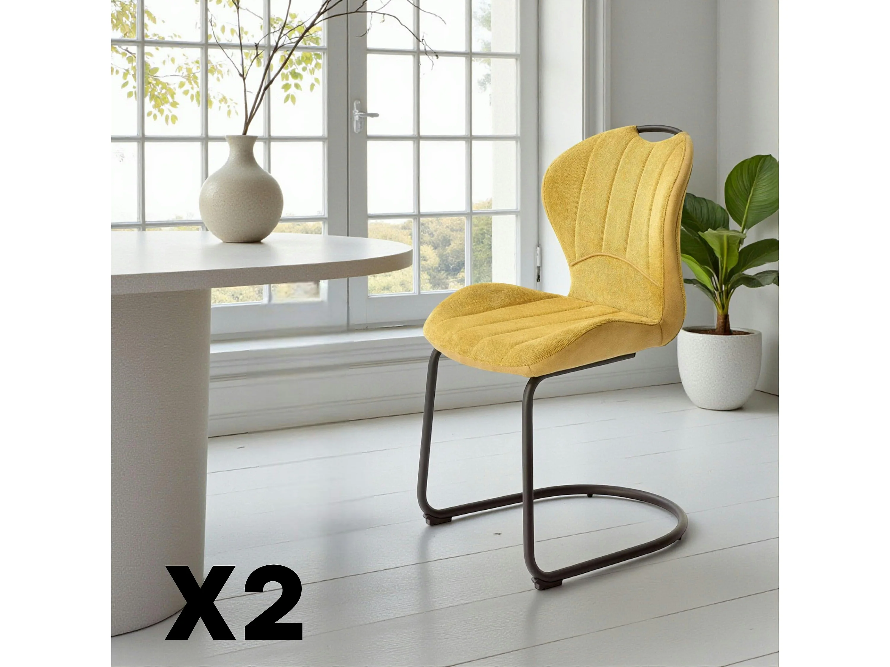 Chaise pied luge bi-matière en tissu moutarde (lot de 2) LIGURIE