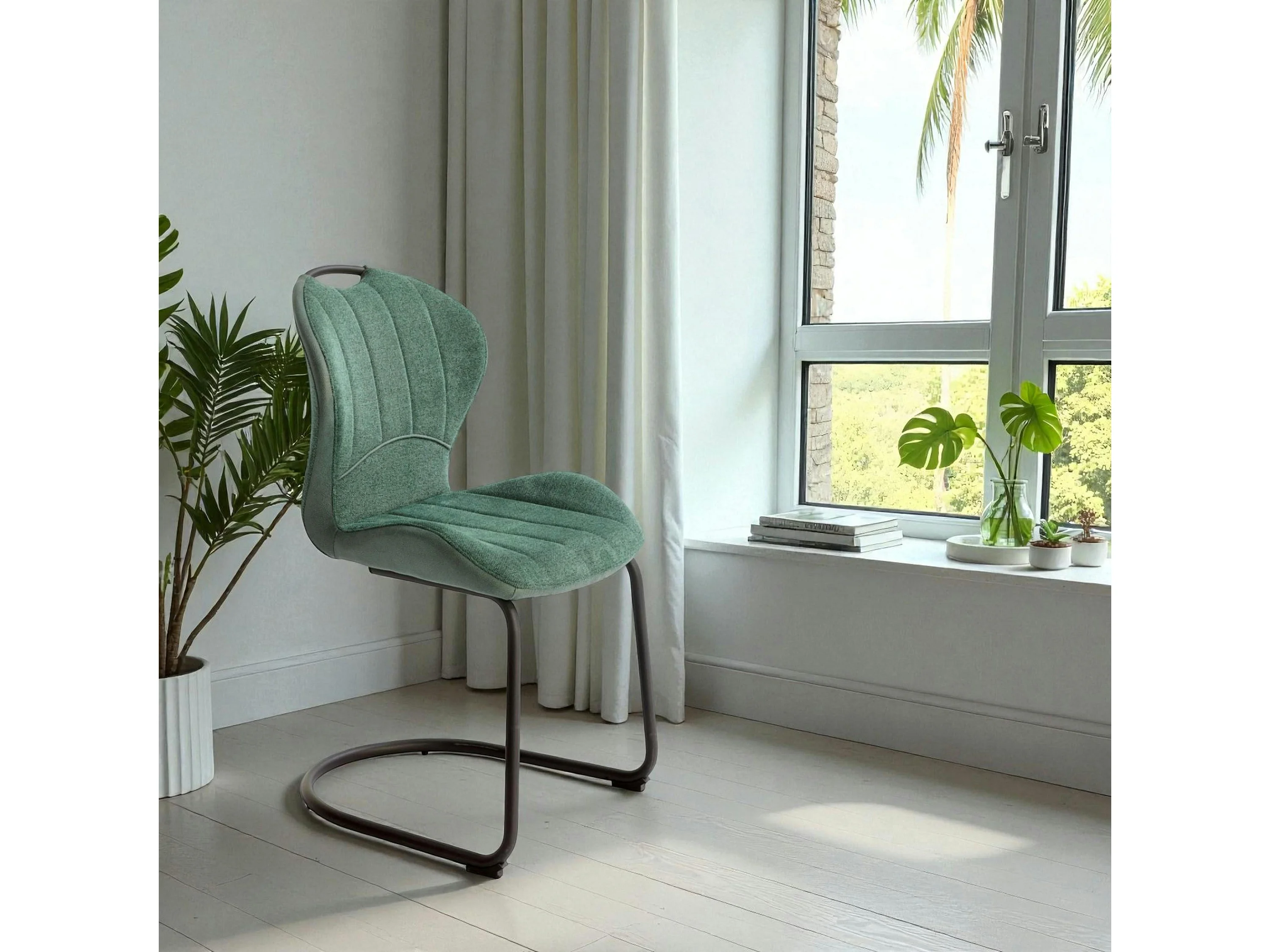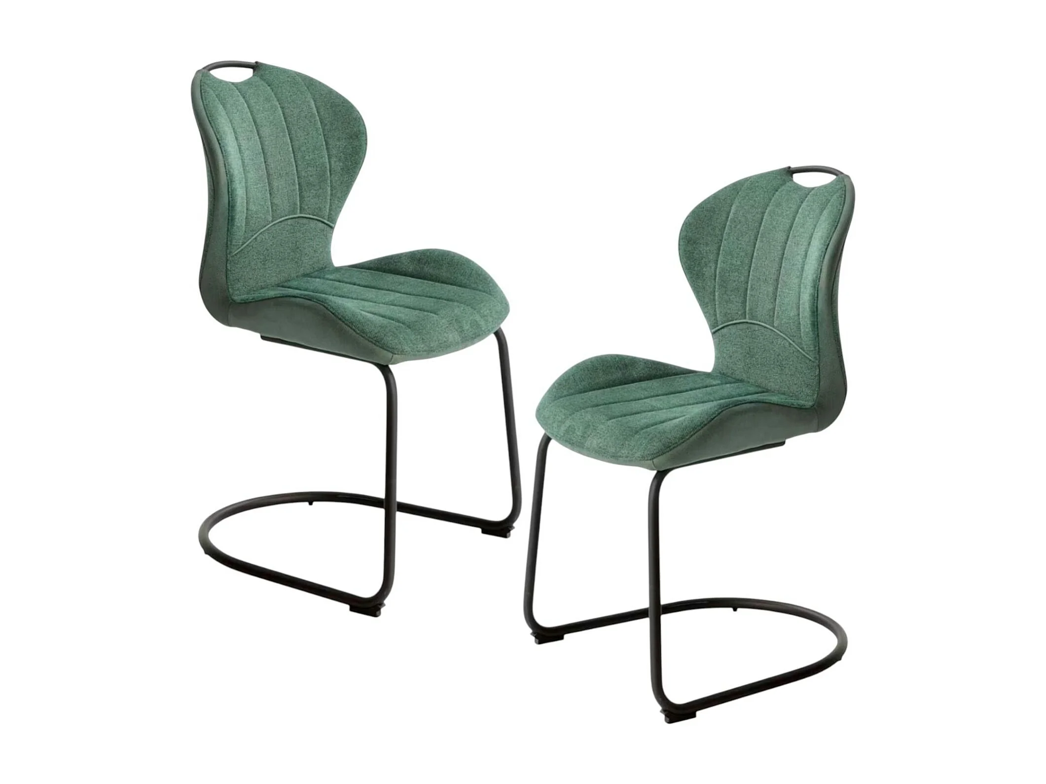 Chaise pied luge bi-matière en tissu vert (lot de 2) LIGURIE