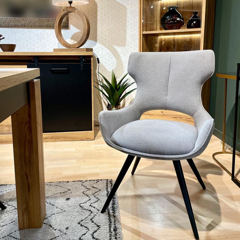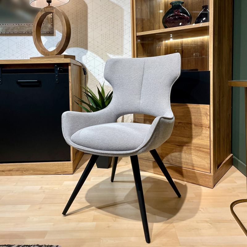 Chaise pivotante 180° tissu gris clair et pieds métal noir – SEVILLE