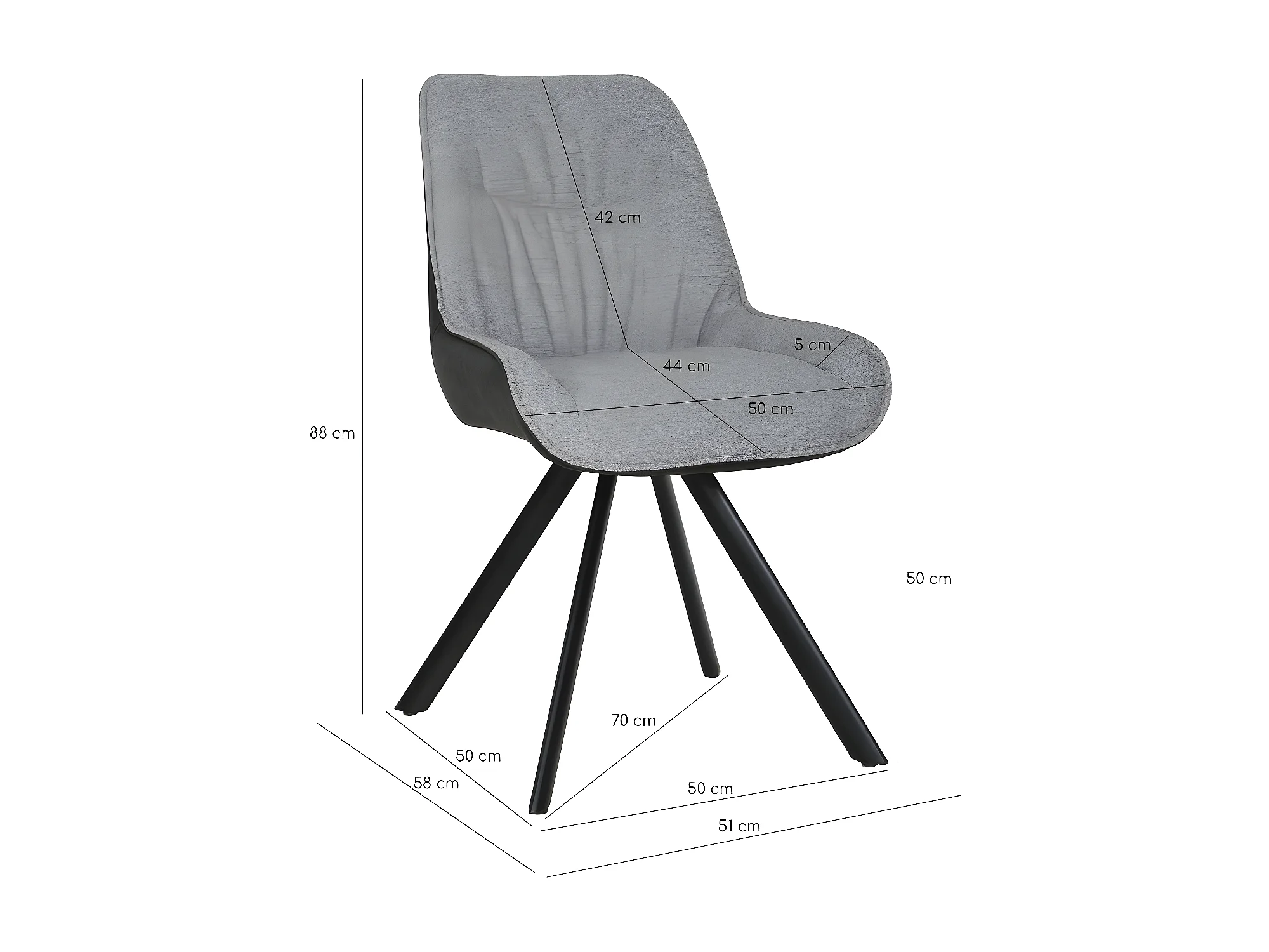 Chaise pivotante 180° tissu gris et microfibre pieds métal - JADEN