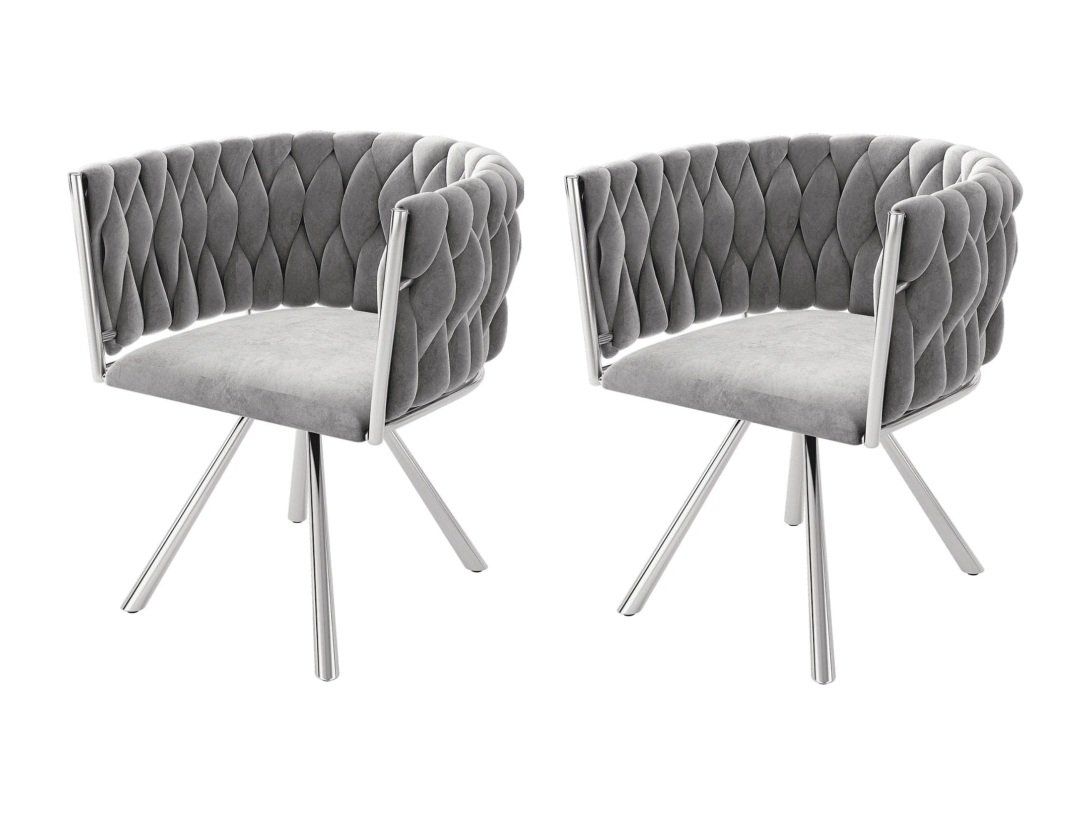 Chaise pivotante,chaise de maquillage,chaise de salle à manger,chaise pivotante de loisirs, quatre pieds d'appui en métal, gris+argent,2pcs