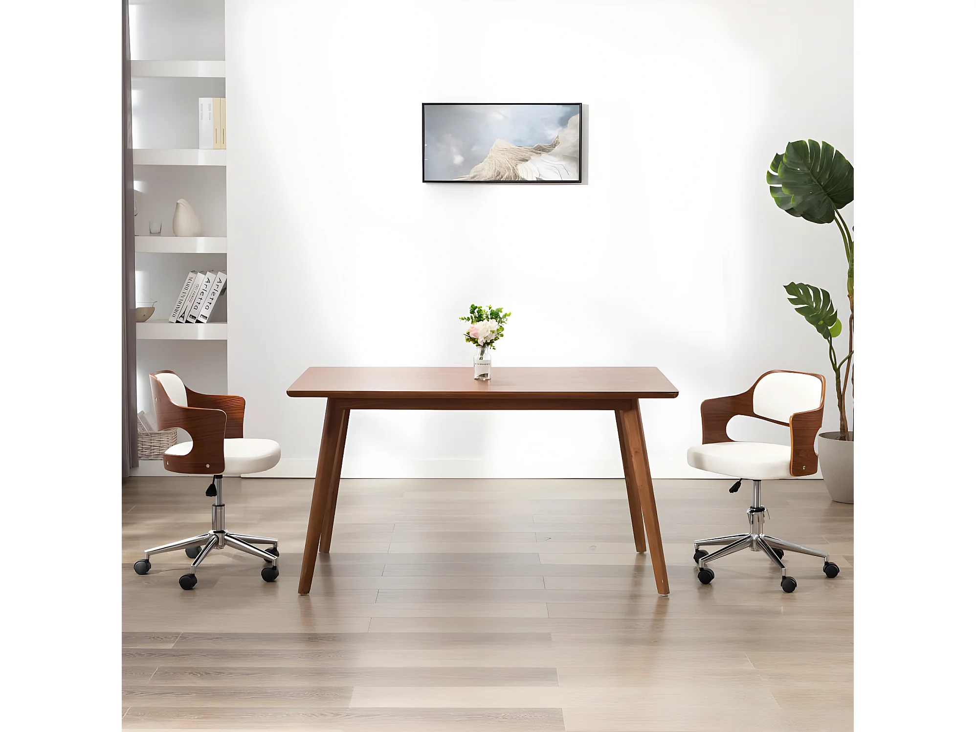Chaise pivotante de bureau Blanc Bois courbé et similicuir SEF20017