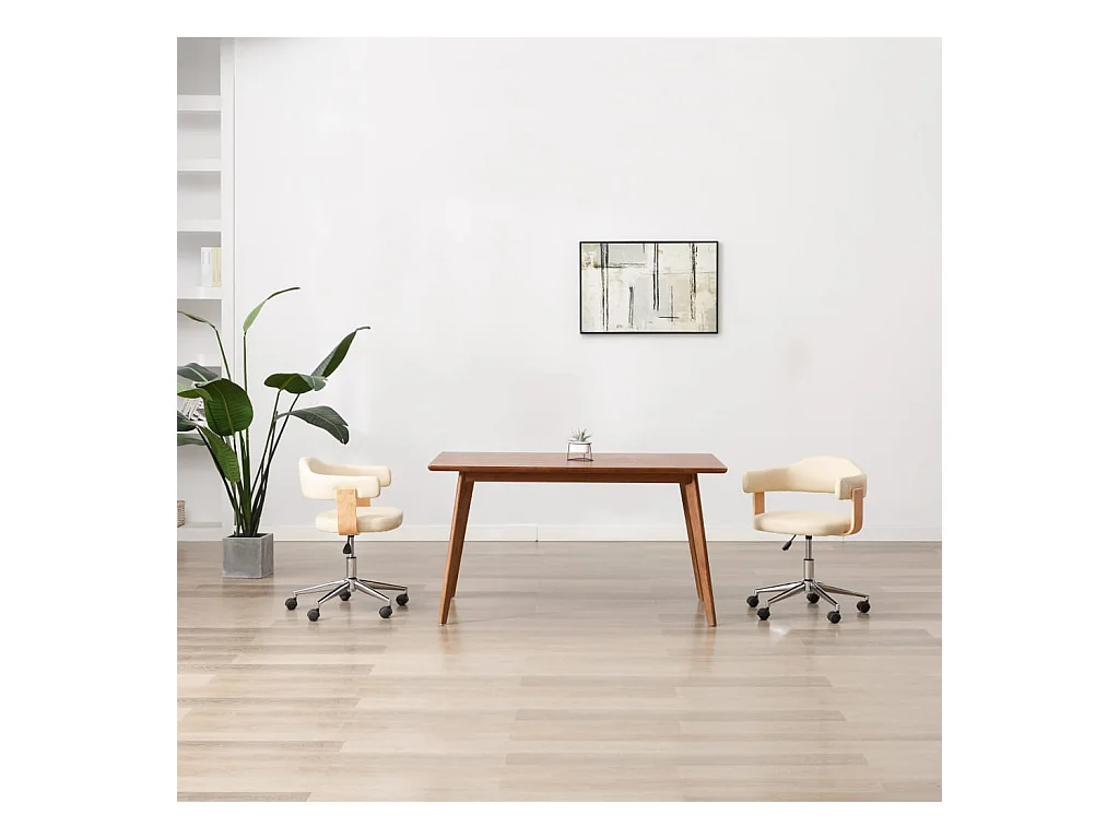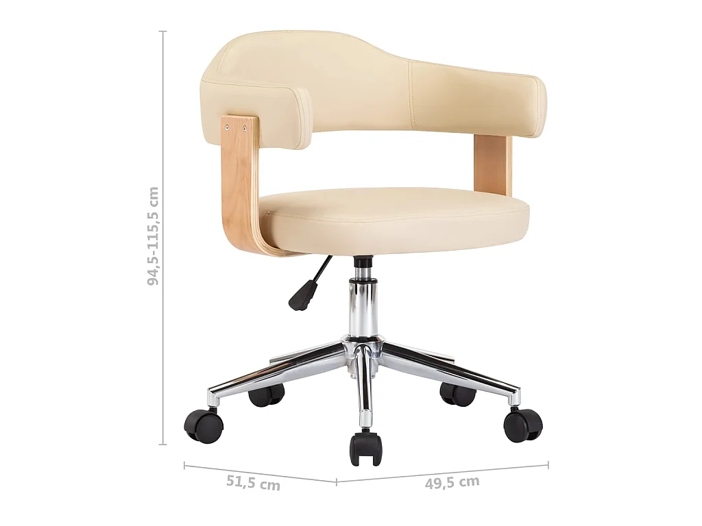 Chaise pivotante de bureau Crème Bois courbé et similicuir 4