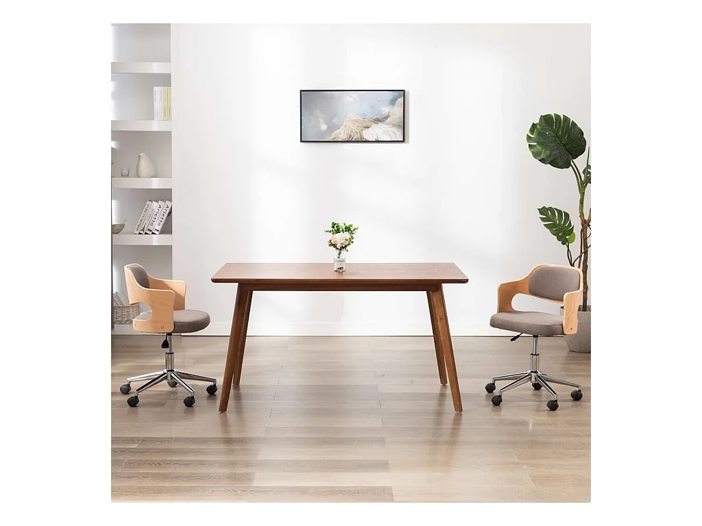 Chaise pivotante de bureau Taupe Bois courbé et tissu