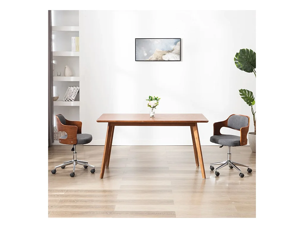 Chaise pivotante de salle à manger Gris Bois courbé et tissu REO53653
