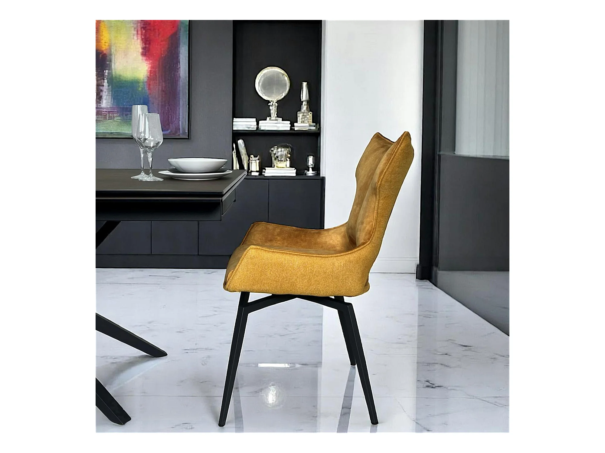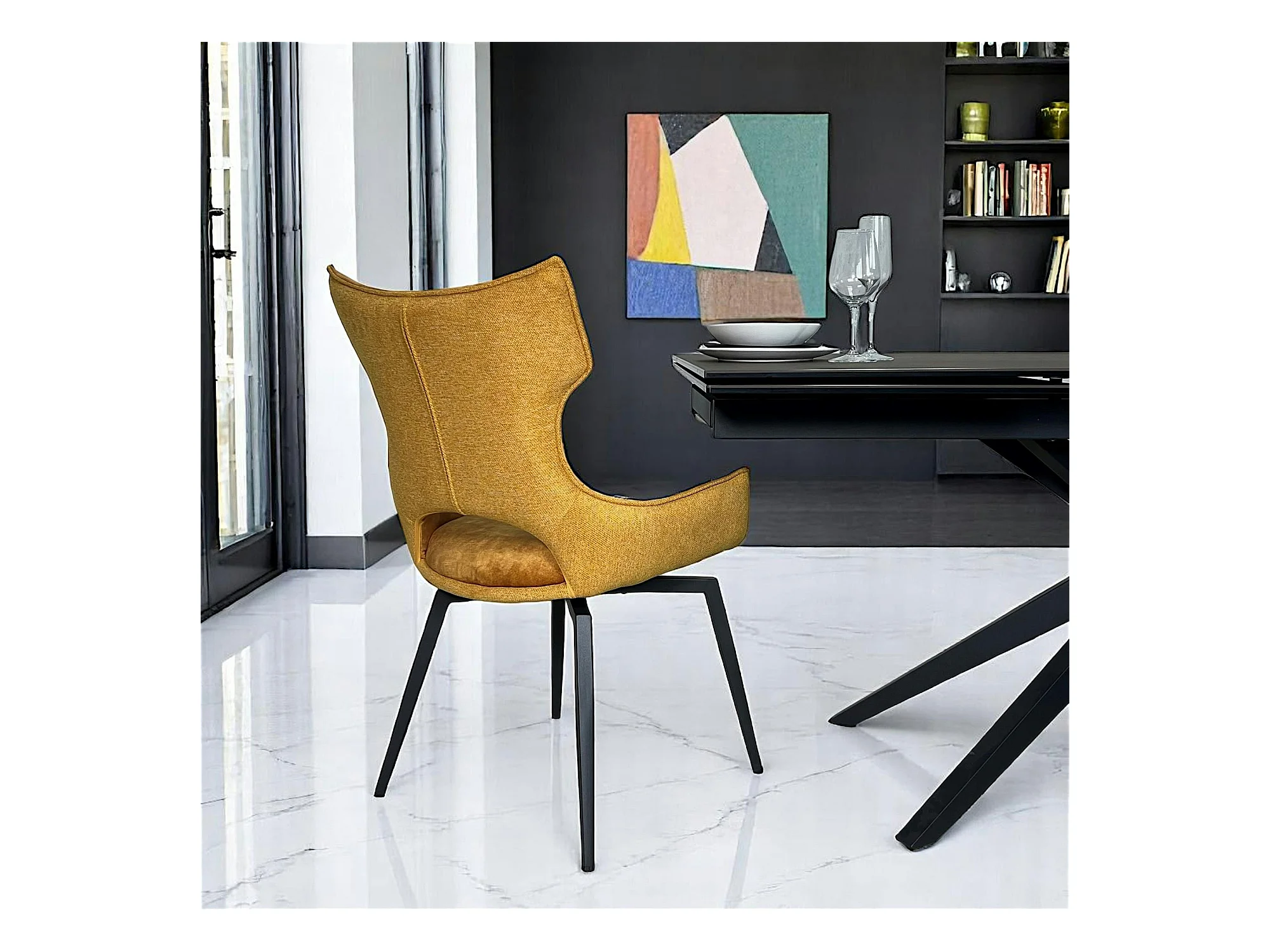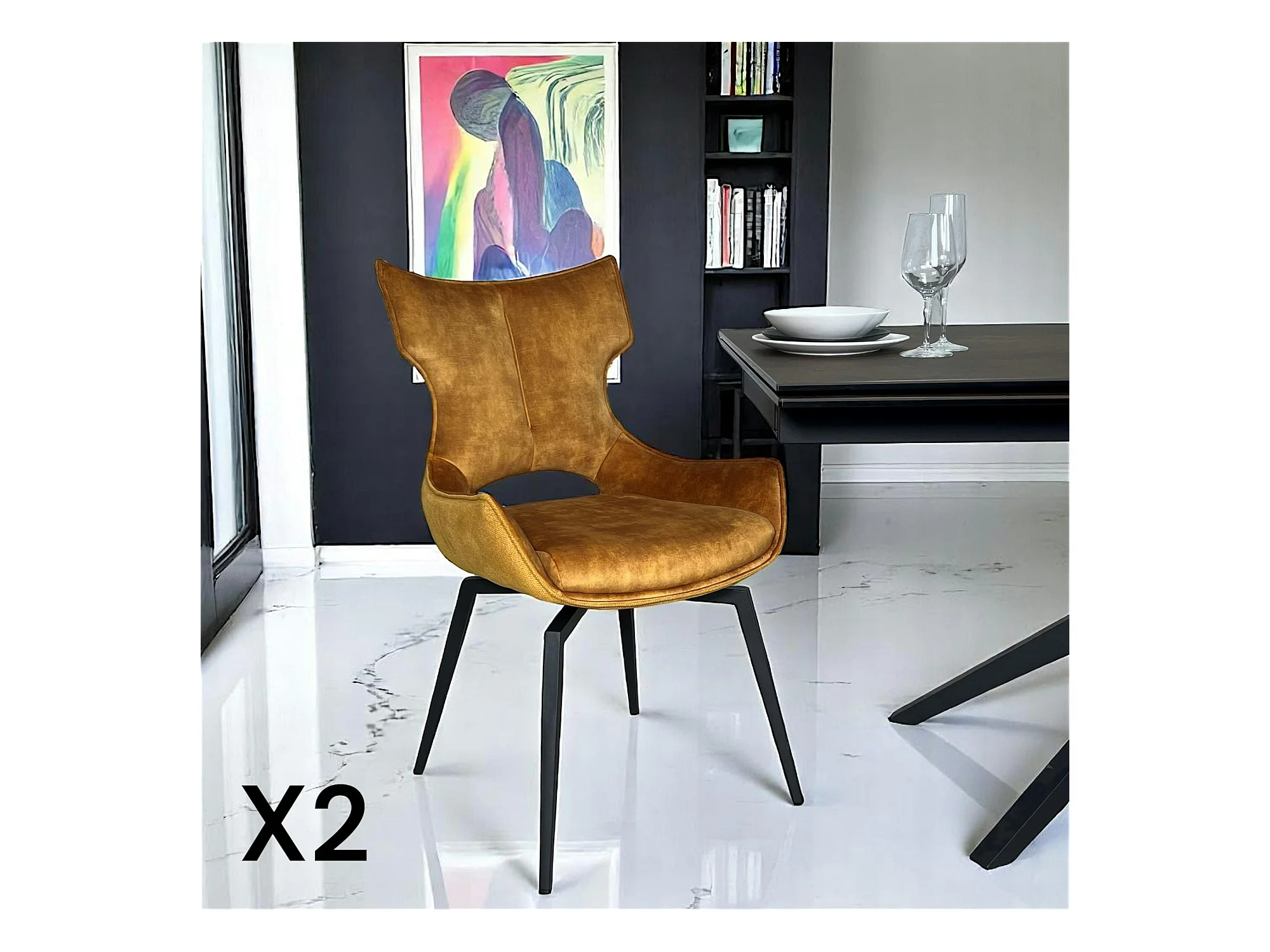Chaise pivotante dorée bi-matière, dossier en T (lot de 2) LOMBARDIE