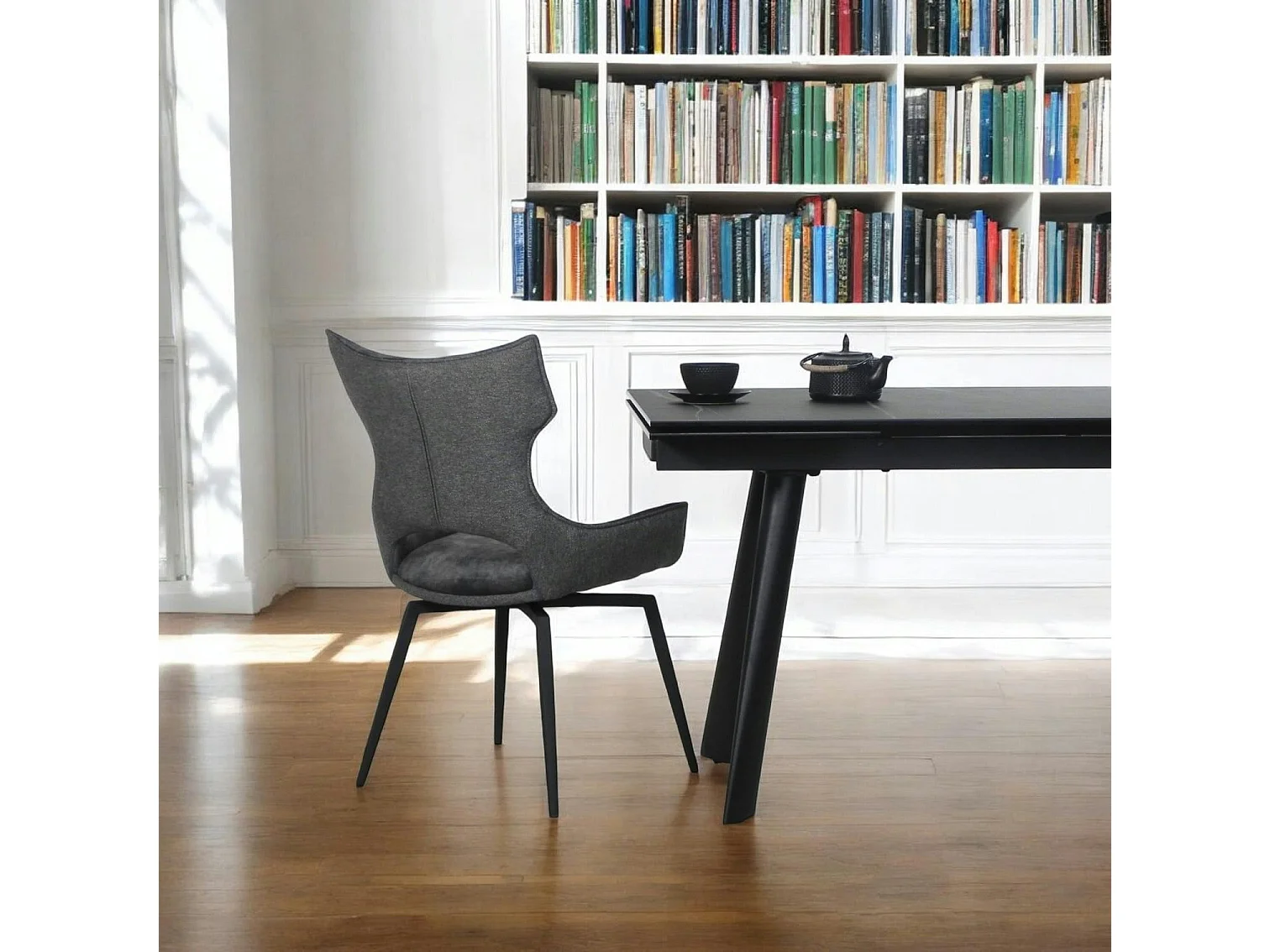 Chaise pivotante gris anthracite bi-matière, dossier en T (lot de 2) LOMBARDIE