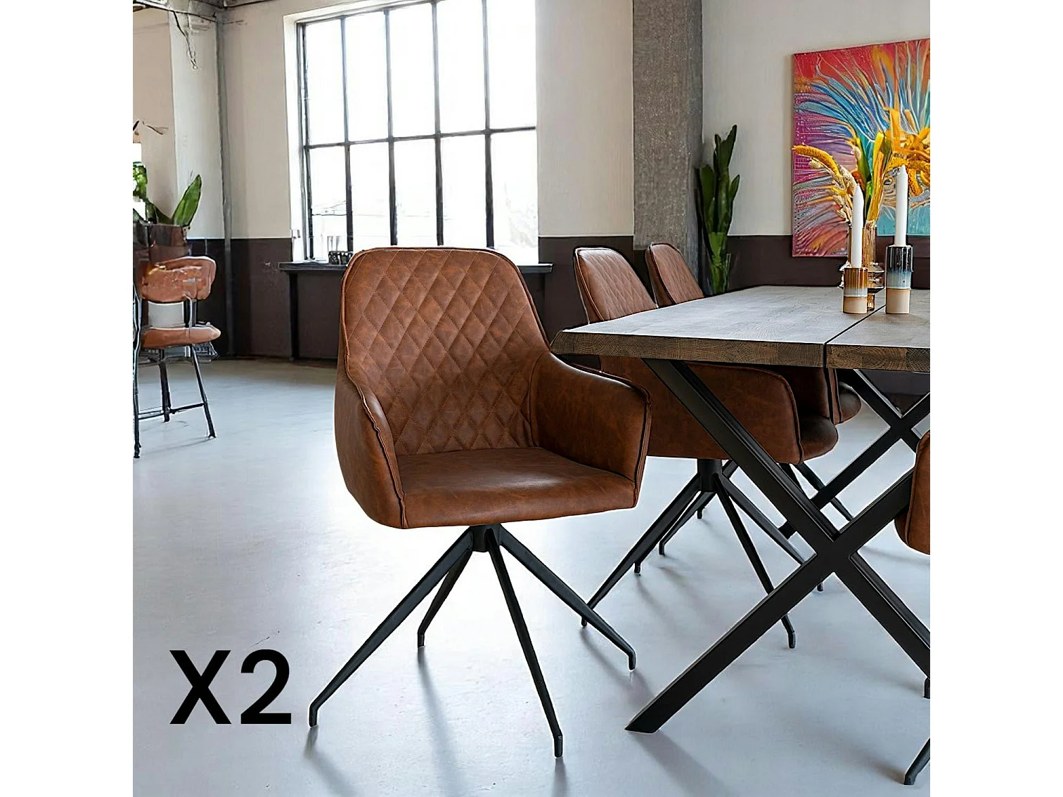 Chaise pivotante marron avec accoudoirs (lot de 2) SAVONE