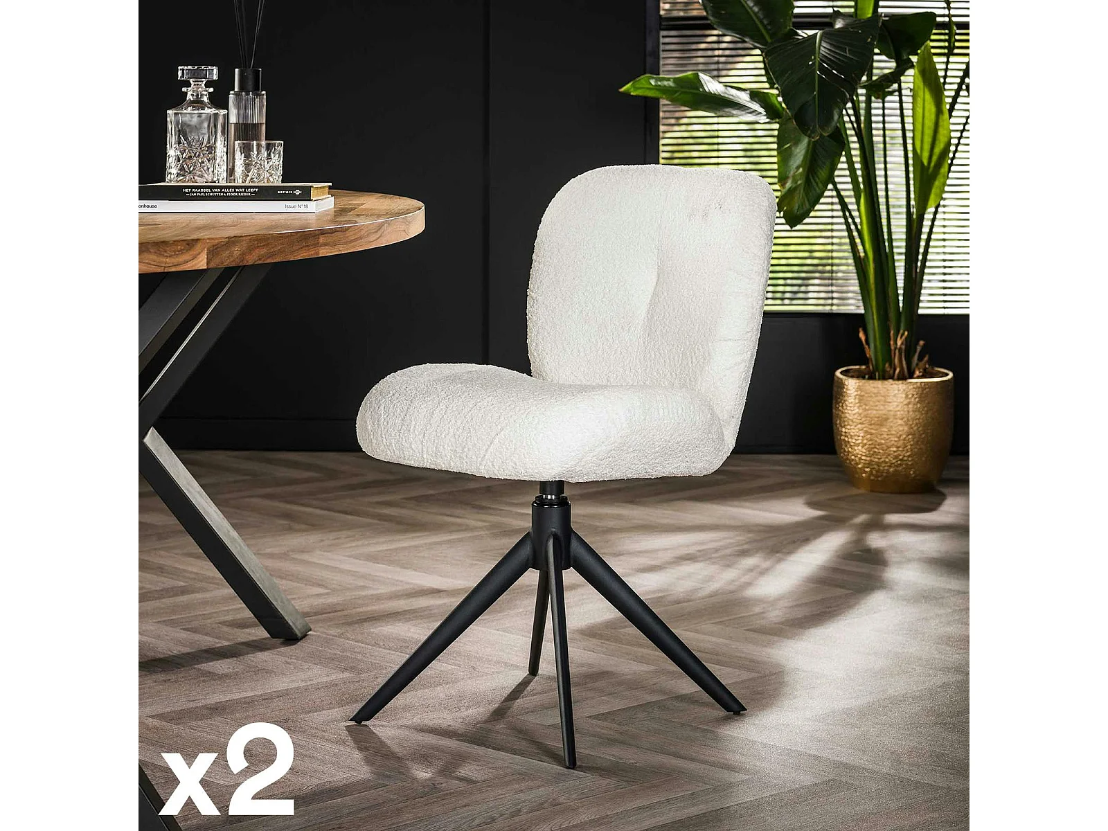 Chaise pivotante rembourrée en bouclette blanche (lot de 2) GALWAY