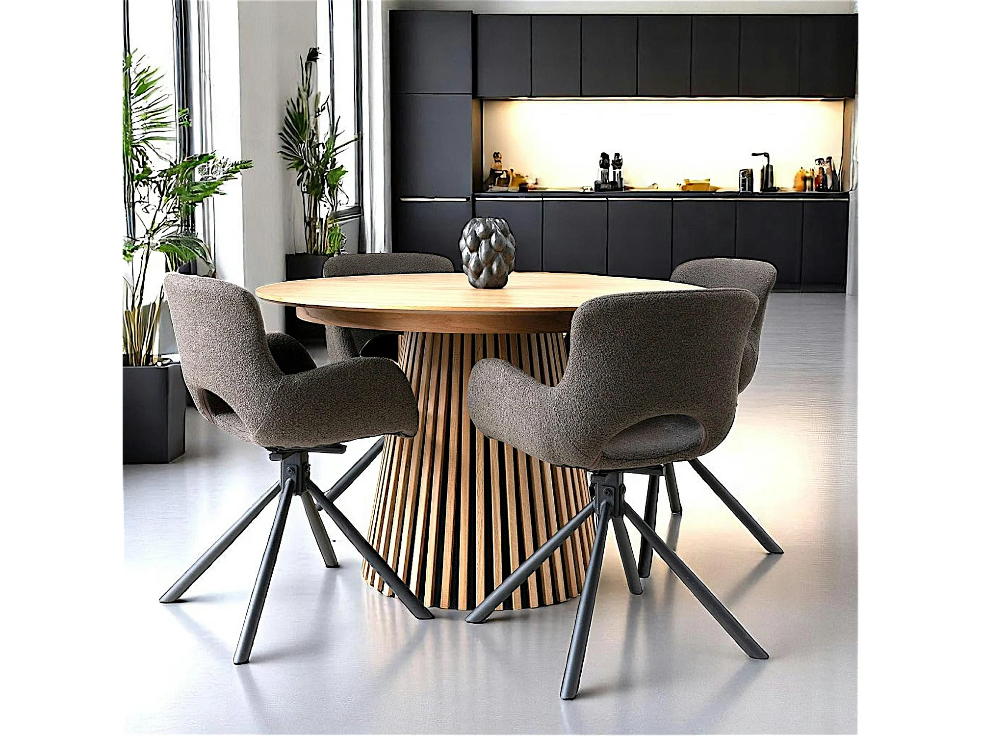 Chaise pivotante taupe en tissu bouclette, dossier ouvert (lot de 2) SAVONE