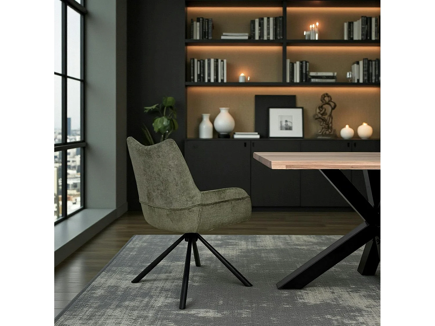 Chaise pivotante vert kaki à accoudoirs (lot de 2) IENA