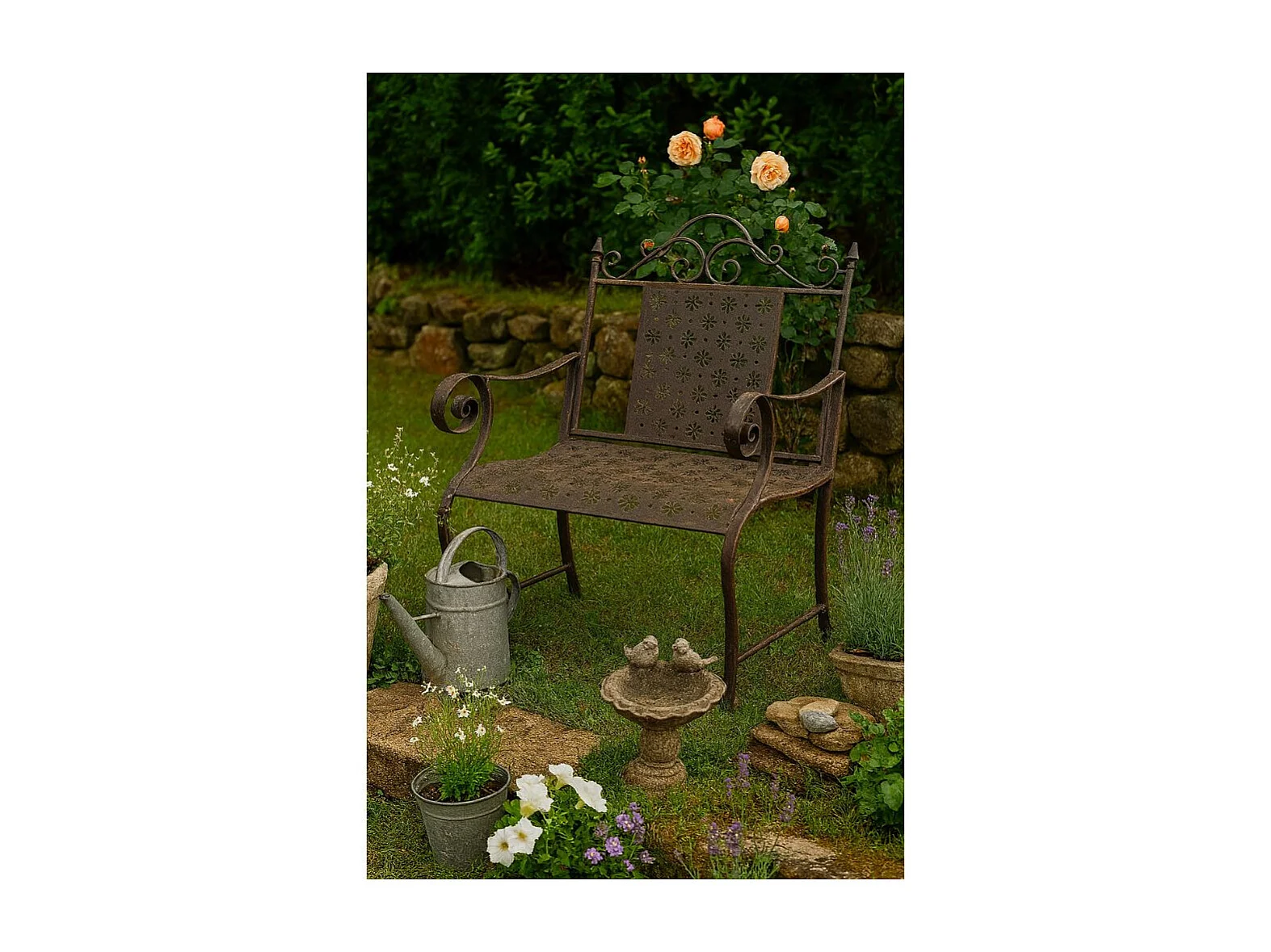 Chaise pliante jardin fauteuil banc ancien en fer marron 61x96 cm