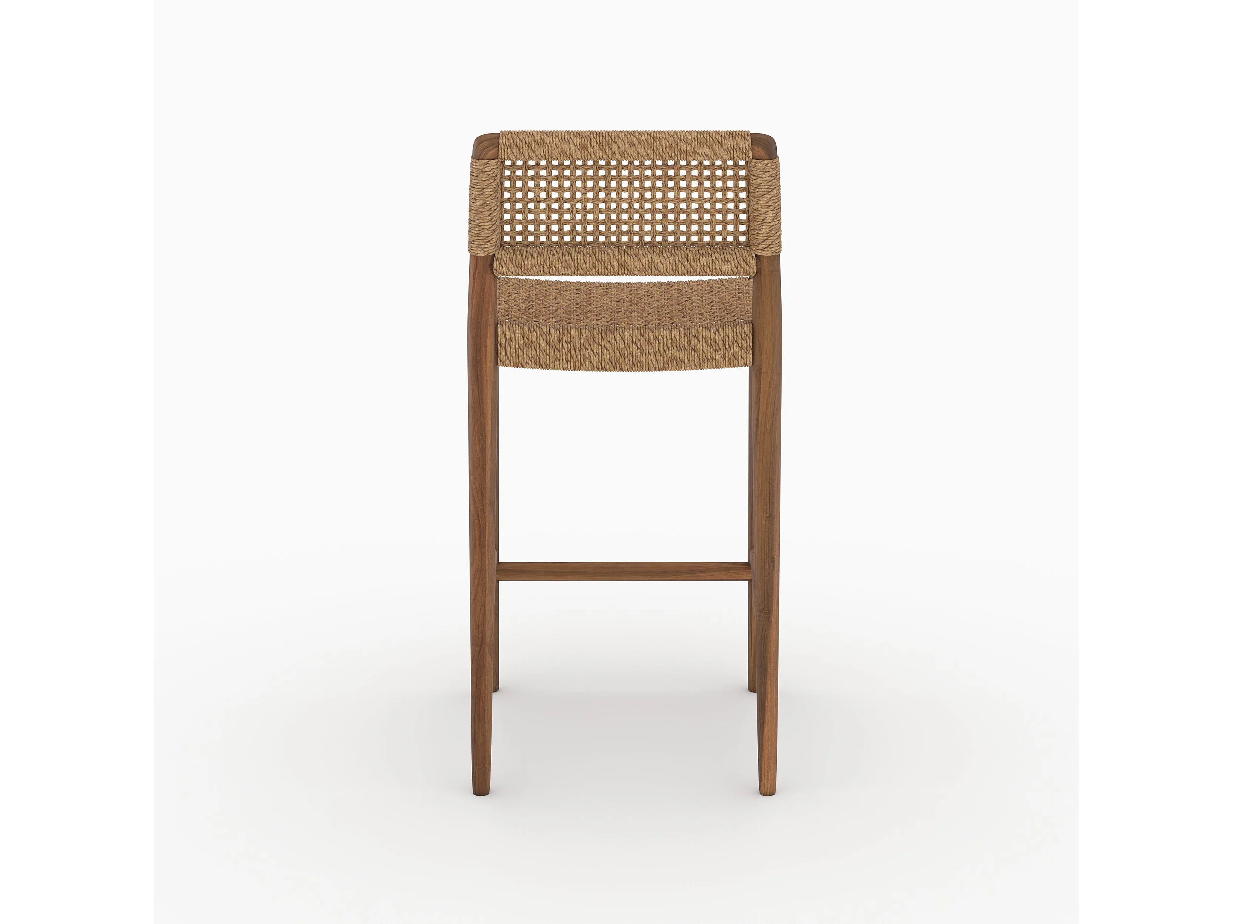 Chaise pour îlot central 65 cm en teck vernis et tissage synthétique - Yaba