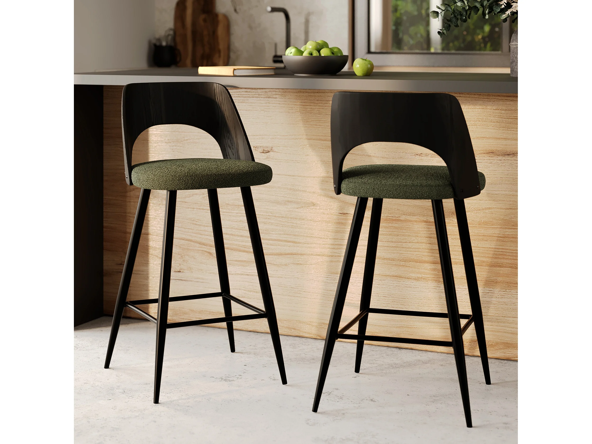 Lot de 2 chaises pour îlot central en tissu bouclé vert kaki 66 cm - Mindy