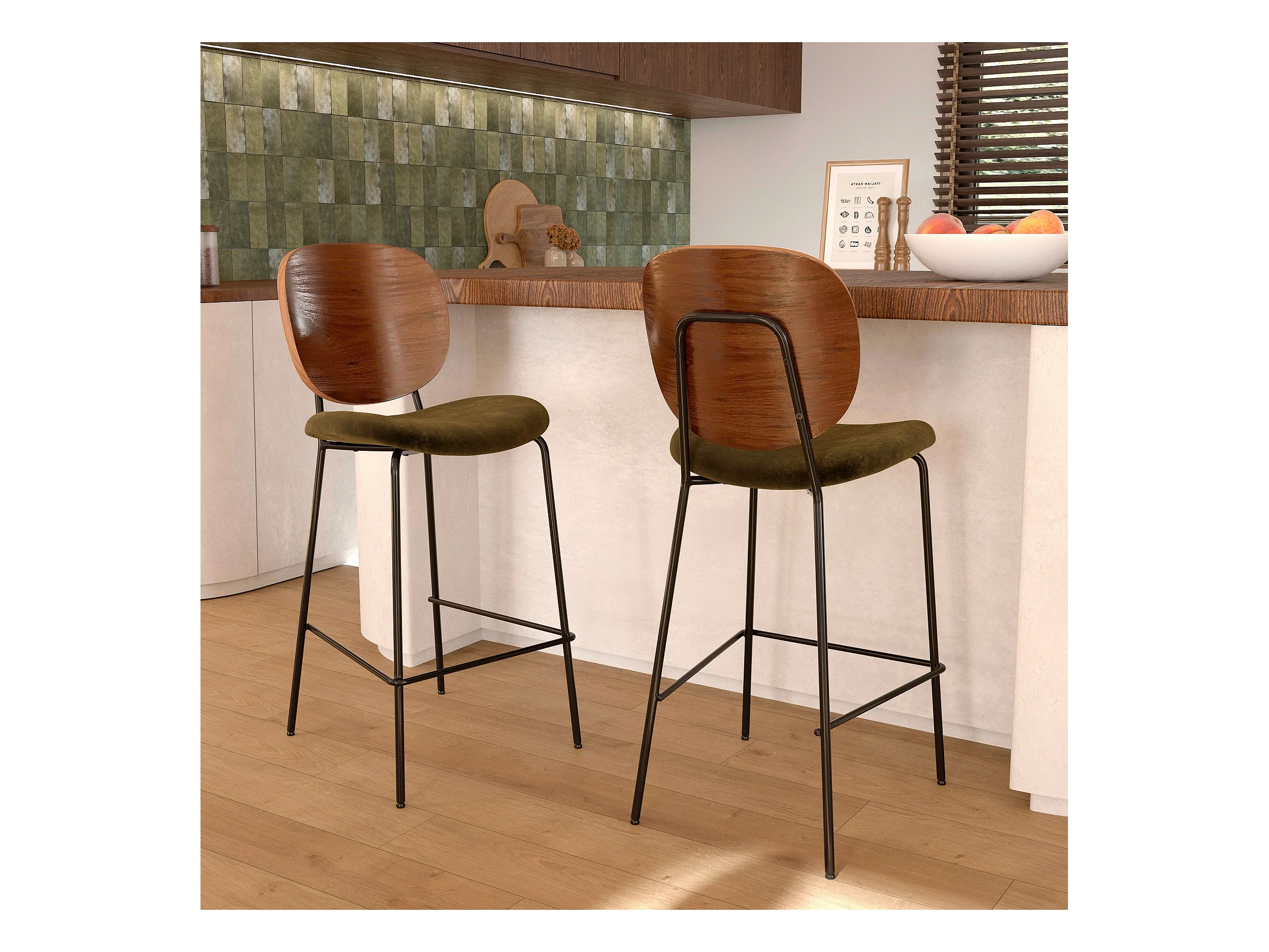 Lot de 2 chaises pour îlot central 65,5 cm en velours vert kaki - Simone
