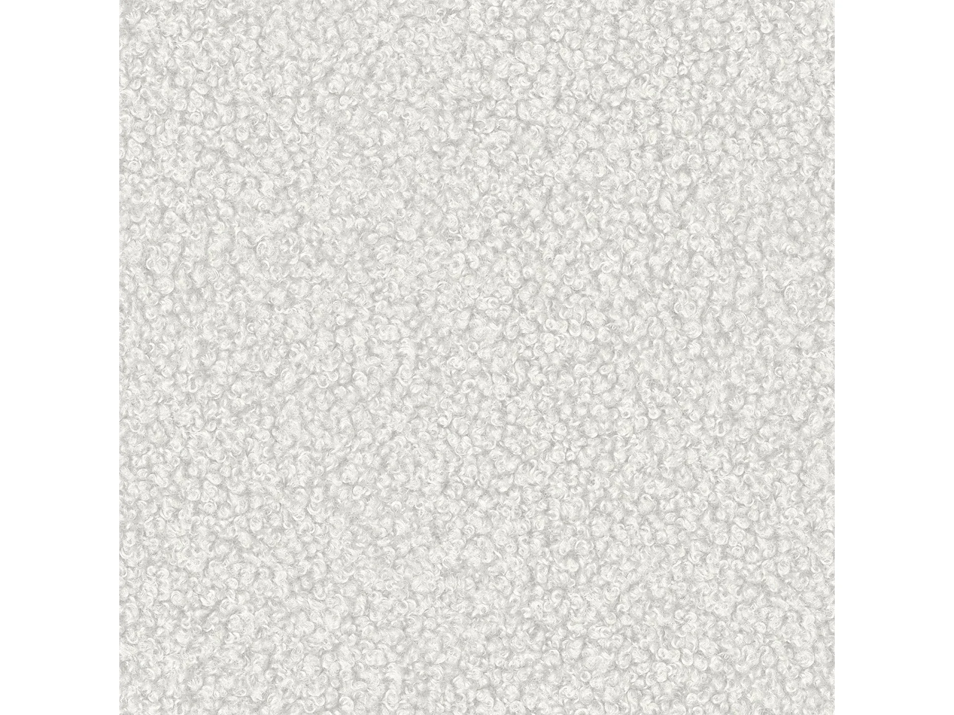 Chaise rembourrée de style Japandi au design arrondi, en bouclé blanc avec une structure en métal noir - Vela