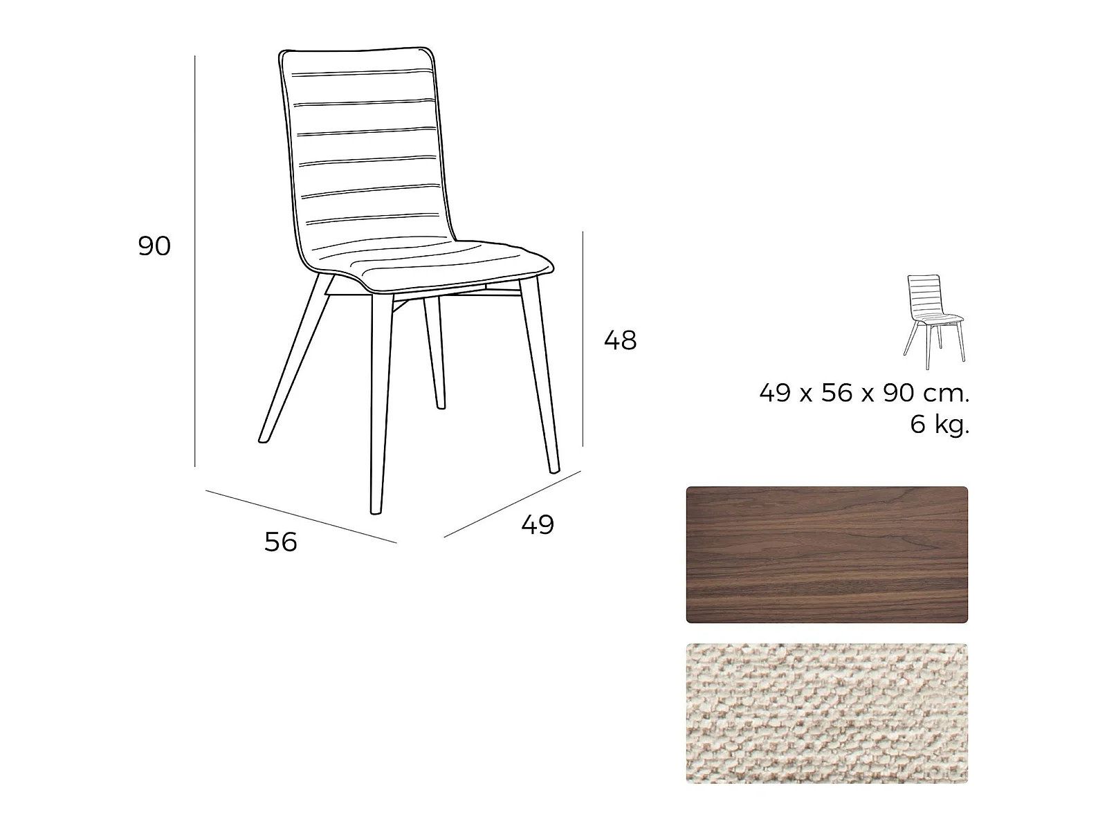 Chaise rembourrée avec pieds bois