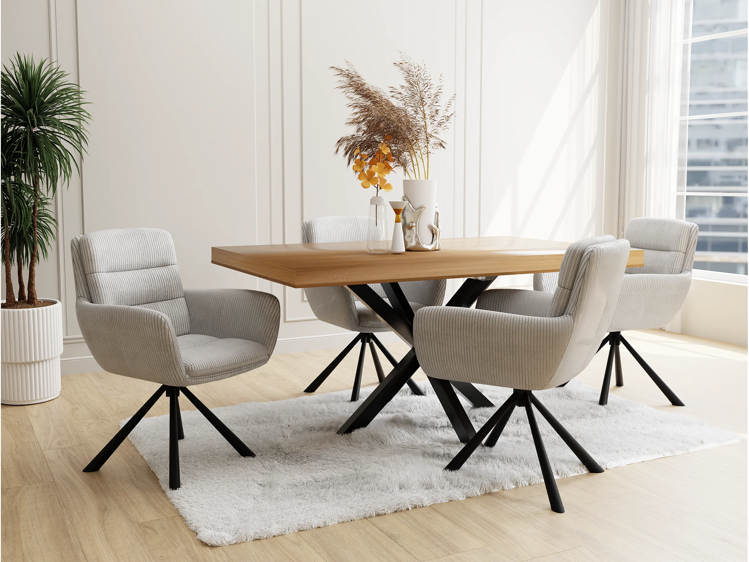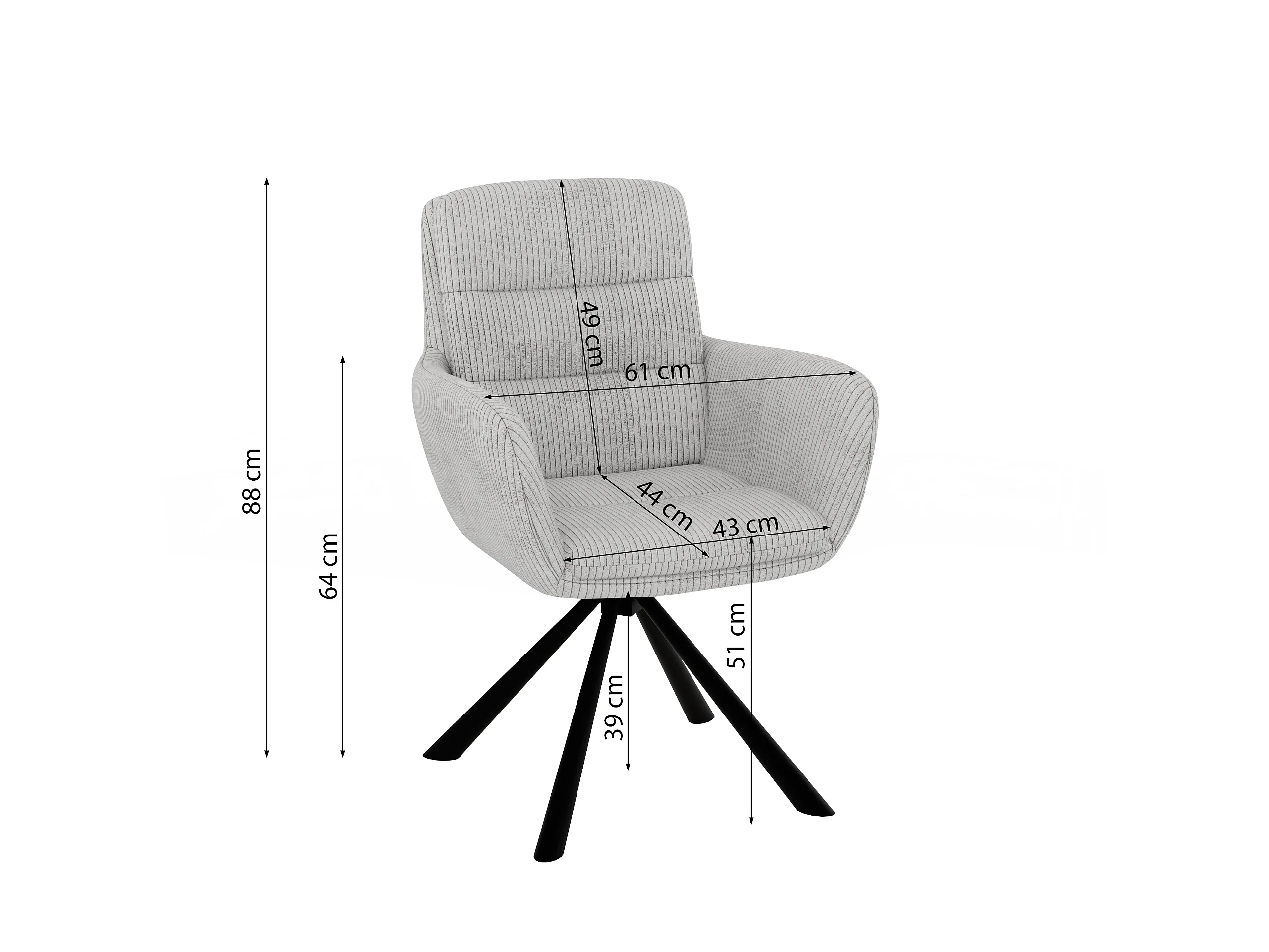Chaise rembourrée en tissu côtelé avec fonction de rotation à 180° et mise à niveau FRANK