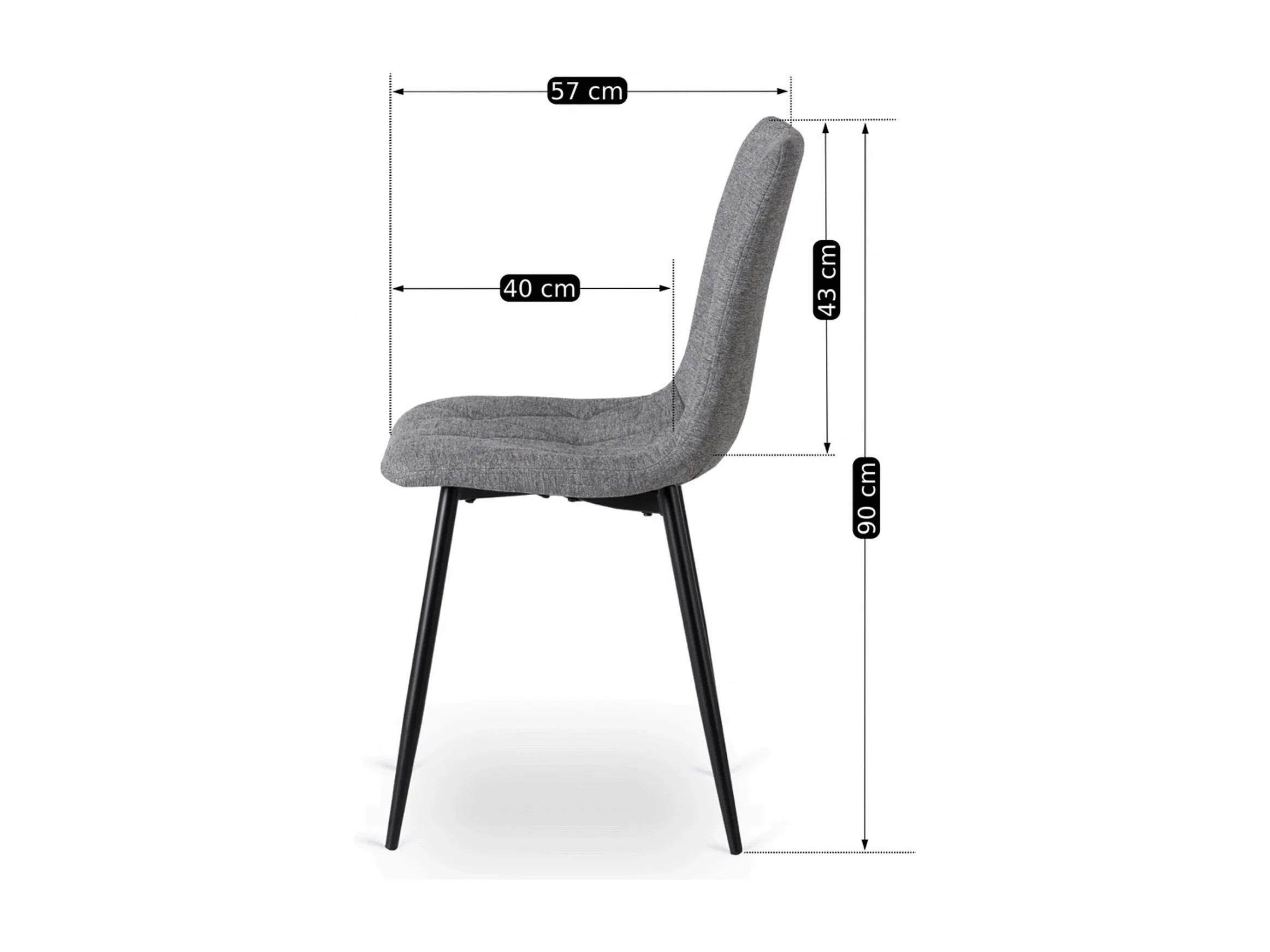 Lot de 4 Chaises rembourrées à surpiqûres carrées LUXANO Anthracite pieds noirs tissu Lumos