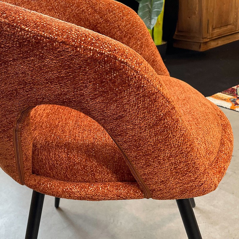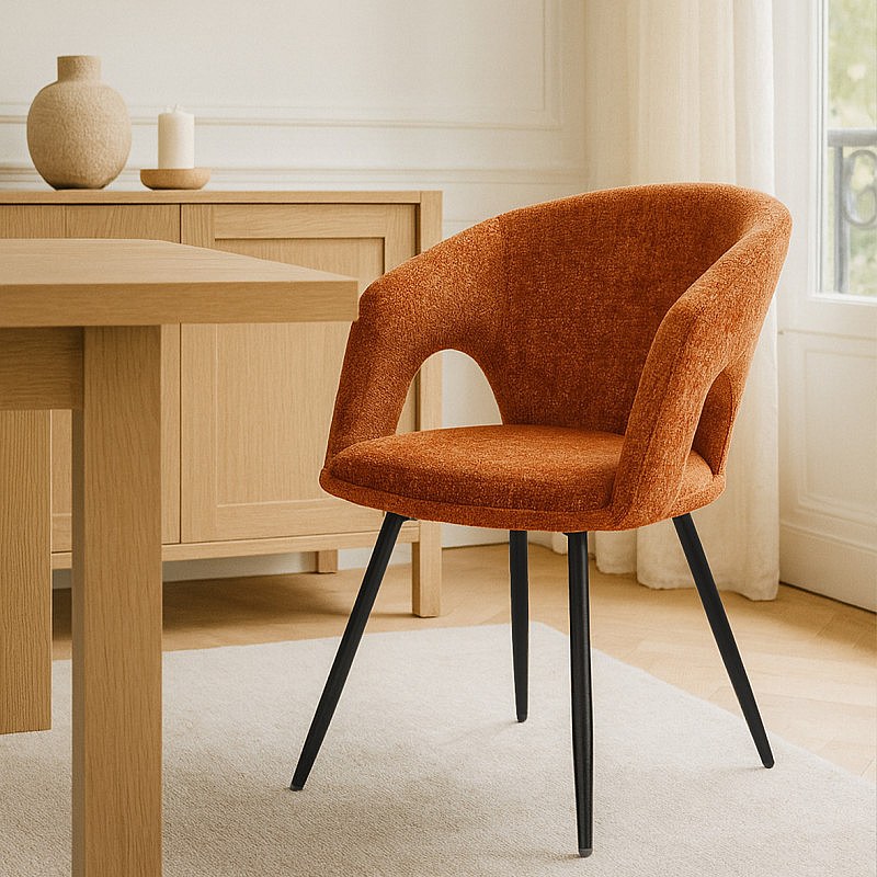 Chaise rotative 180° en tissu doux terracotta et pieds métal - ALEX