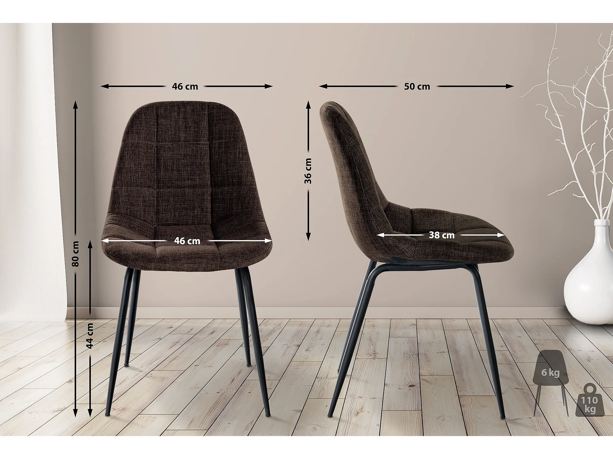 chaise salle à manger - Tissu & Métal noir mat - Marron - Tom
