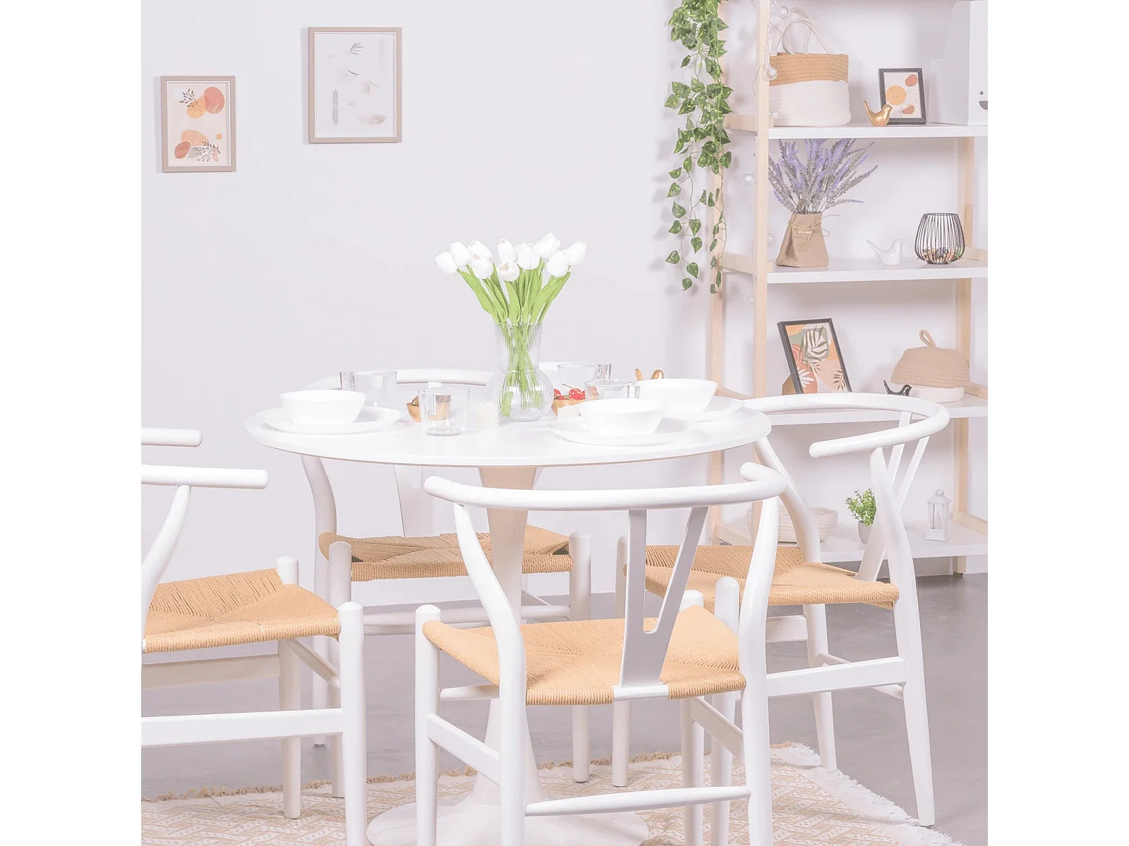 Chaise scandinave en bois de hêtre coloré et corde écologique - Wish - Blanc