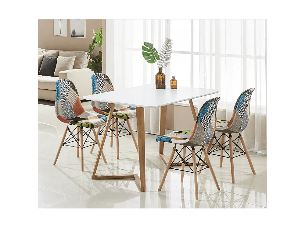 Chaise Scandinave en Tissu Patchwork - Pieds Eiffel - Multicolore