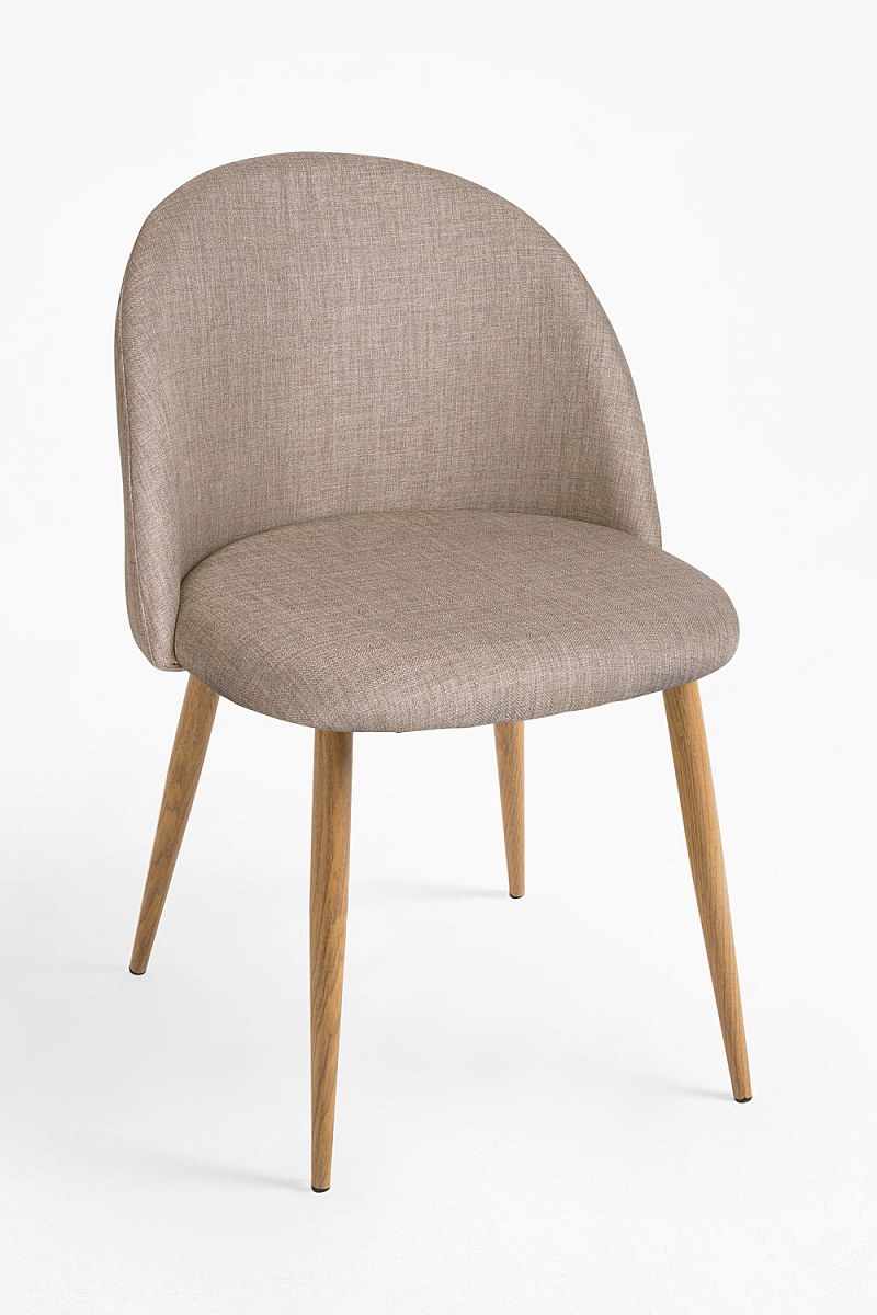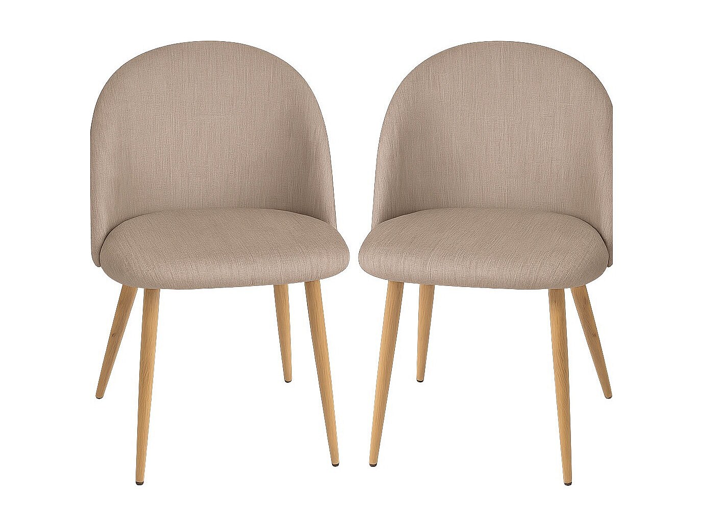 Lot de 2 chaises Kazon - Tissu élégant et pieds métal effet bois clair-Couleur Beige clair
