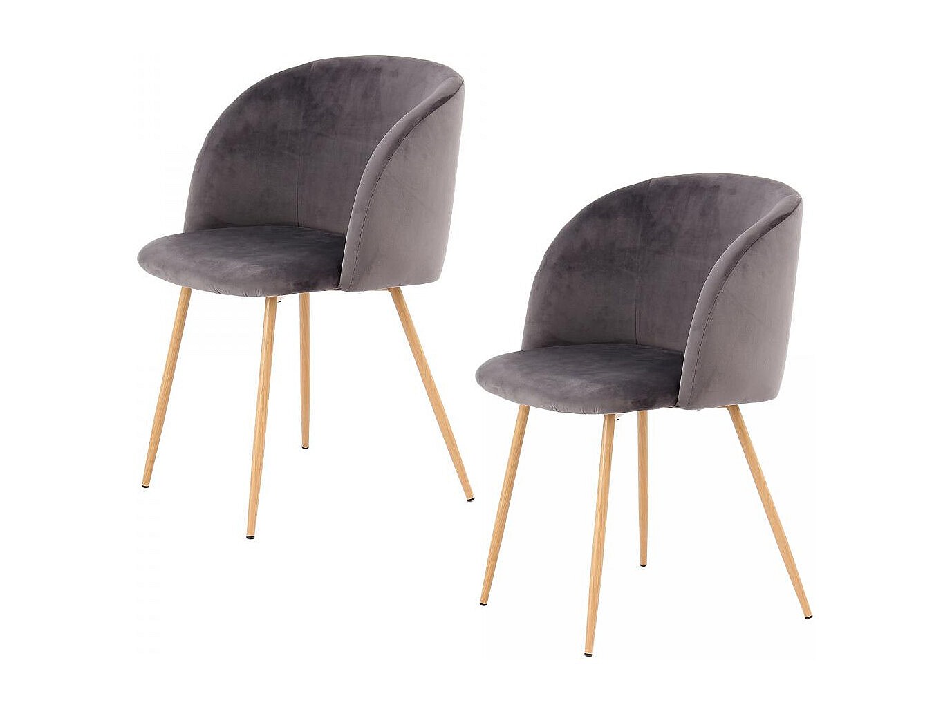 Lot de 2 chaises velours gris pieds métal noir dim. 52L x 54l x 79H cm
