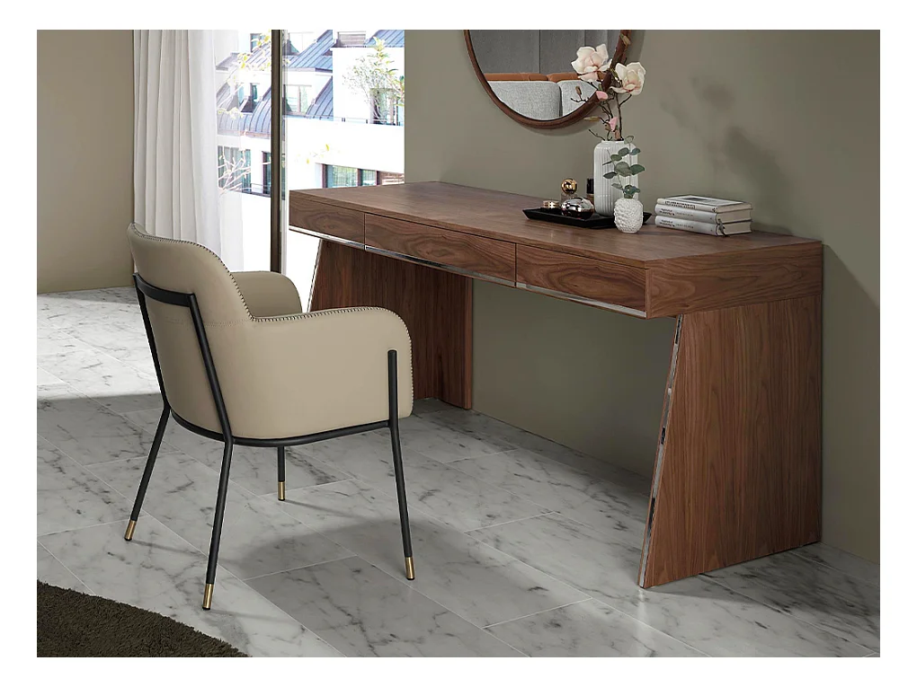 Chaise simili cuir et cuir éco beige et pieds en acier Léo-Couleur DUO 54