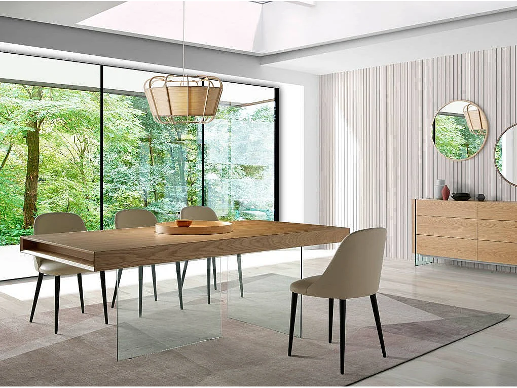 Chaise similicuir et pieds bois foncé Fanawi-Couleur Aqua 07 Sable