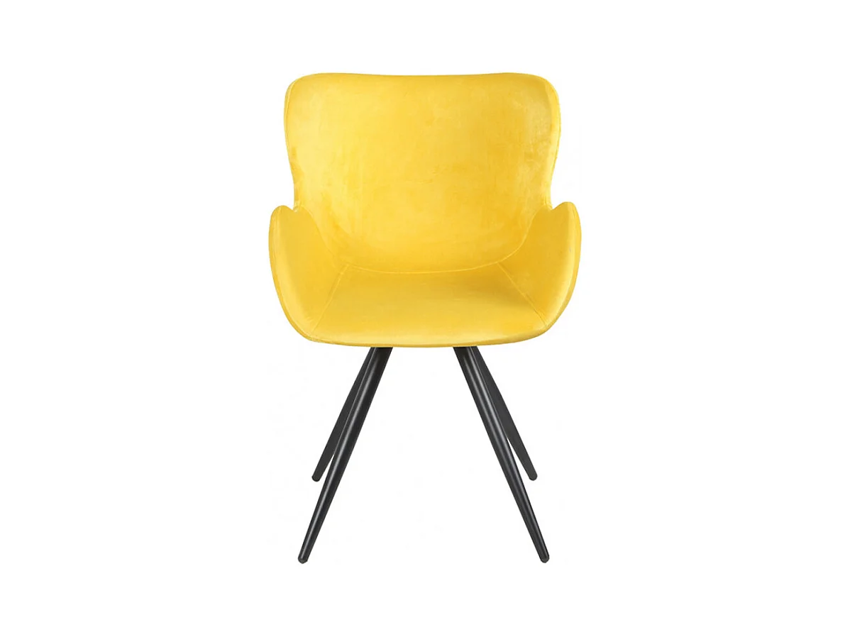 Chaise style scandinave velours jaune et pied métal noir - LOTUS