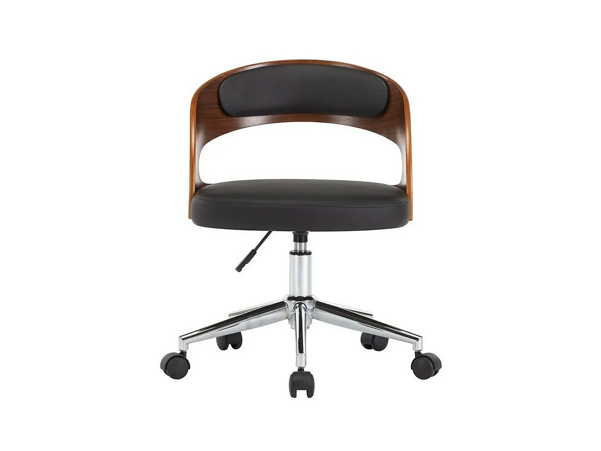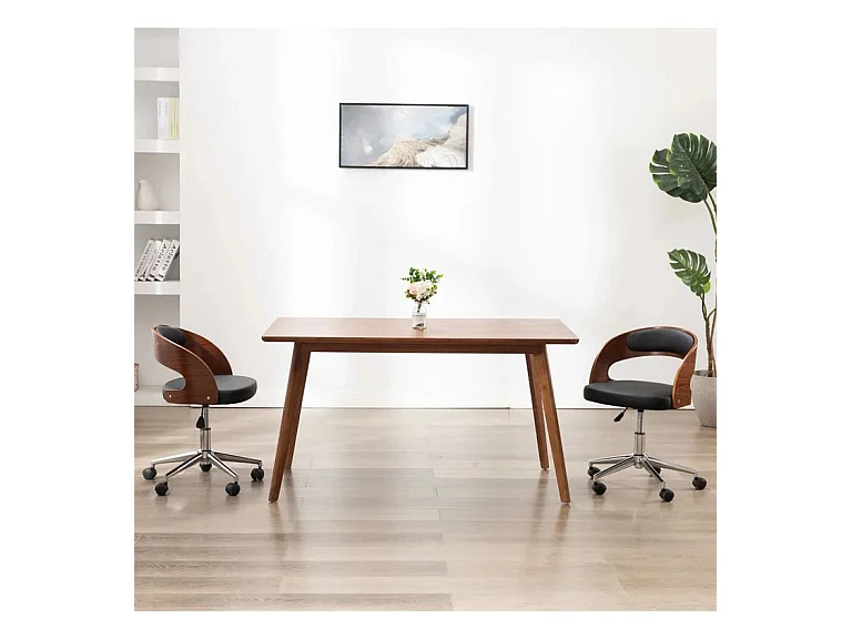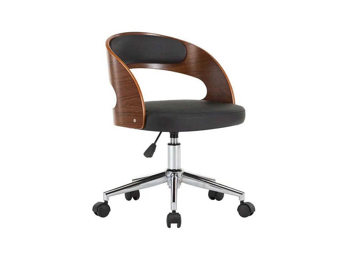 Chaise sur roulettes simili cuir noir et bois foncé Esinn