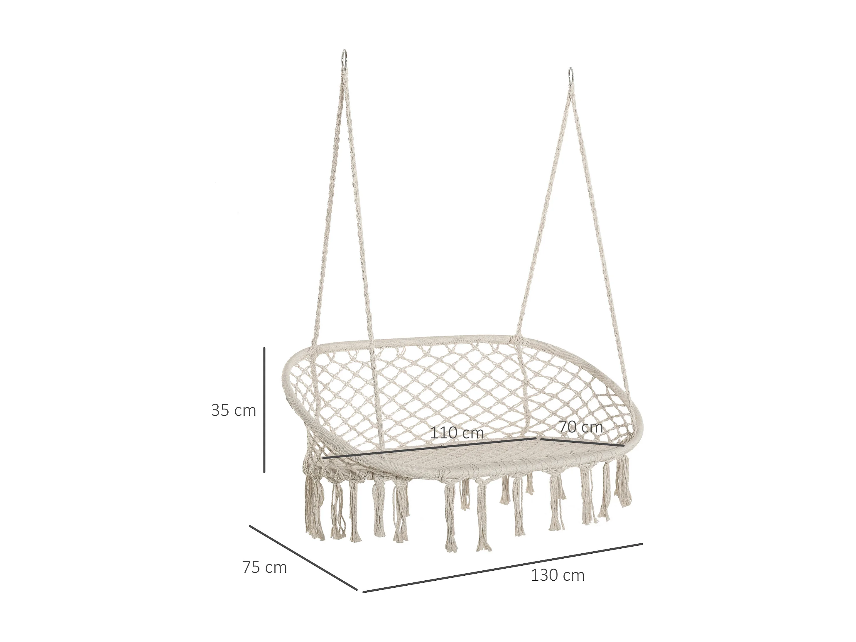 Chaise suspendue banc suspendu dim. 130L x 75l x 40H m macramé coton polyester beige