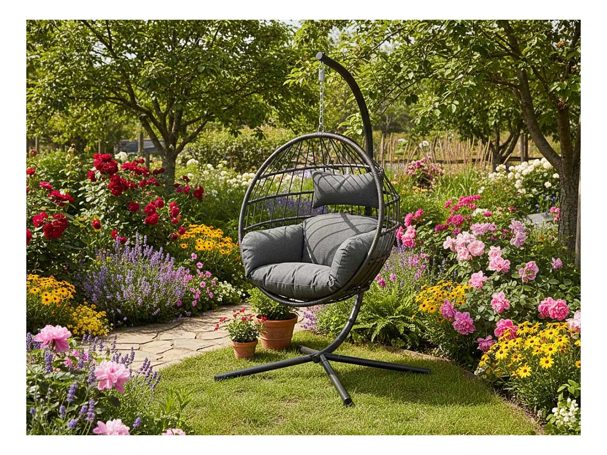 Fauteuil suspendu en corde Palanga Noir - Jardideco