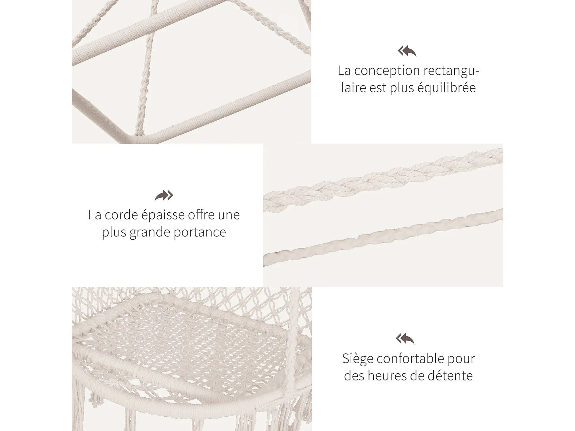 Chaise suspendue hamac de voyage respirant portable dim. 80L x 50l x 150H m coton polyester beige