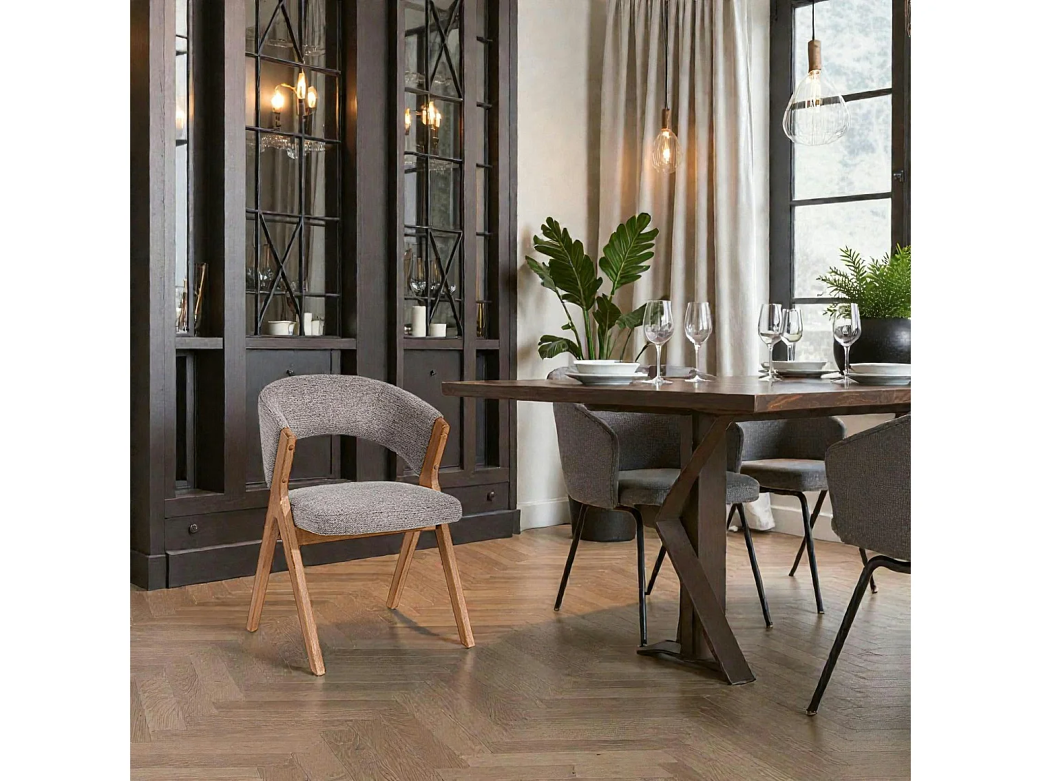 Chaise taupe bois et tissu, forme ronde (lot de 2) AGADE